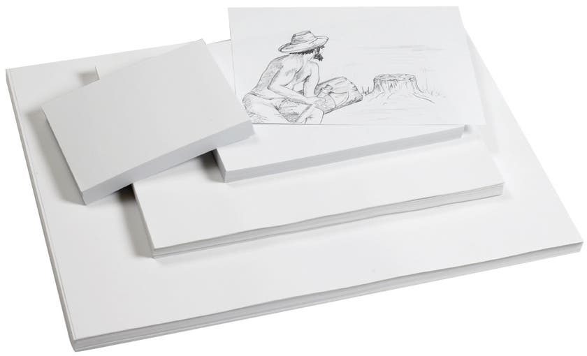Vitt ritpapper i två olika gramvikter.