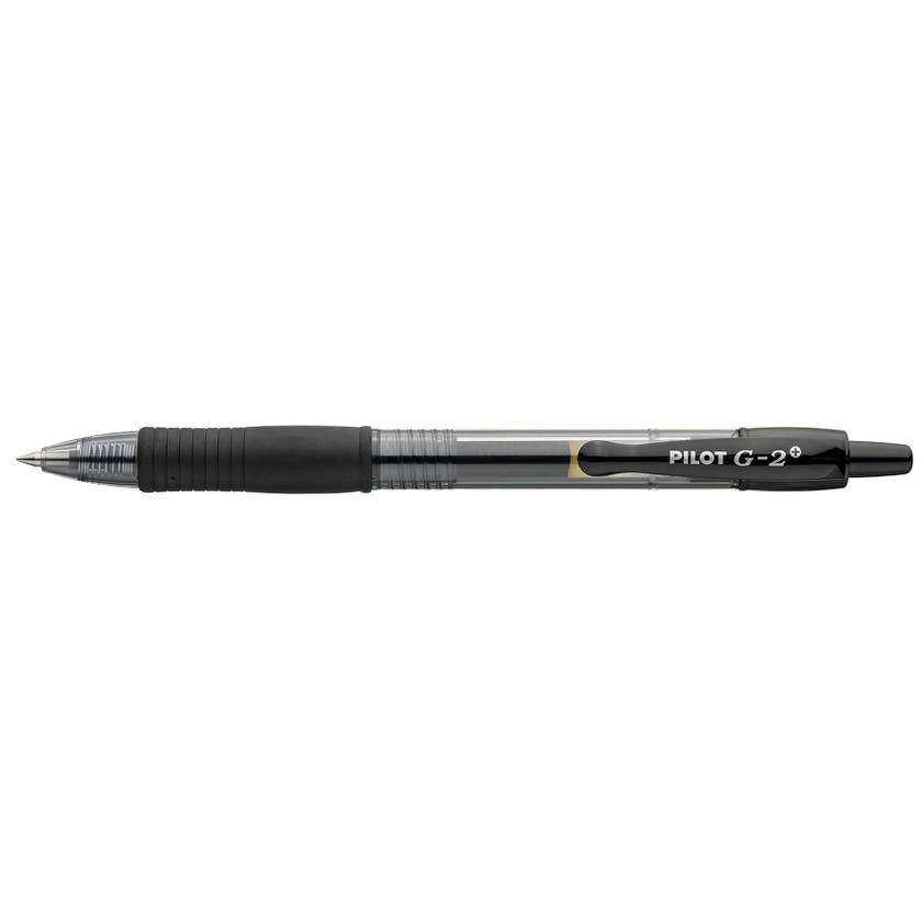 Gelpenna Pilot G-2+ med gummigrepp och klickmekanism med klips. Är en snygg påfyllningsbar penna som har en mjuk skrift som glider lätt över pappret med det mjuka gelbläcket, och är extra smidig att skriva med. Transparent pennkropp med färgat gummigrepp och klips, samtidigt ser du hur mycket som finns kvar i pennan. Dokumentäkta bläck enligt ISO 27668-2. Passar utmärkt om du är på jakt efter arkivbeständiga pennor.