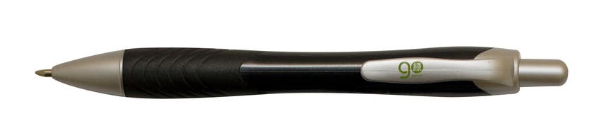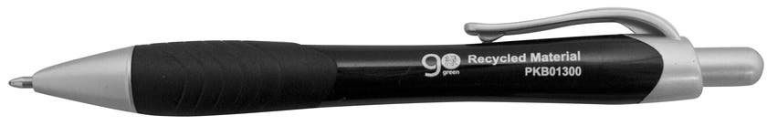 En lite tjockare kulspetspenna med gummerat grepp. Tillverkad av 60% återvunnen plast. Med klämma och klickfunktion.