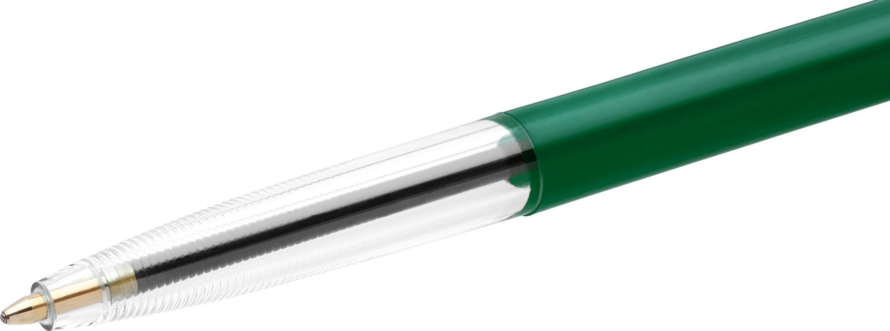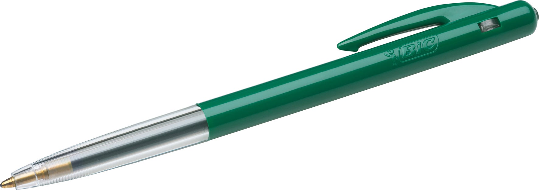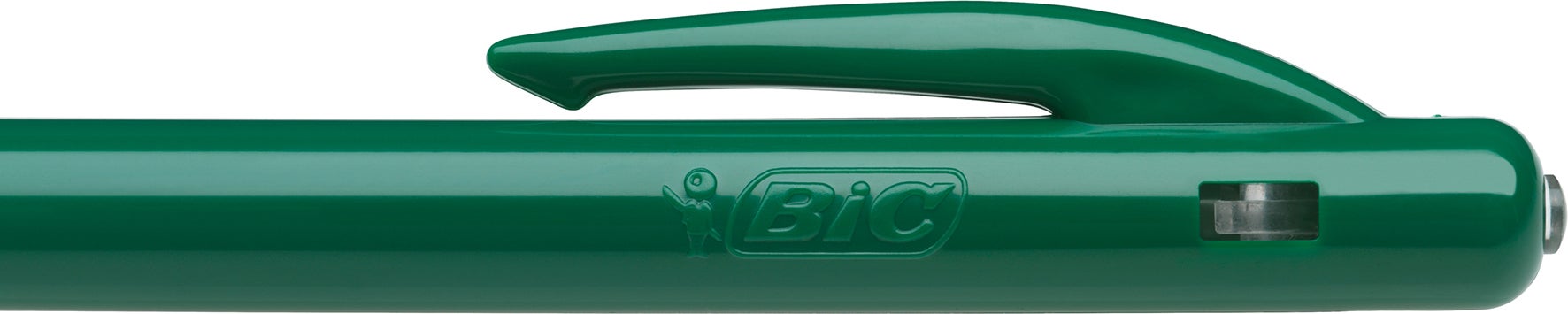 Kulspetspennan Bic Clic M10 en klassisk engångspenna med tryckmekanism på sidan. Överdel på denna bläckpenna visar bläckfärgen. Rund pennkropp med räfflor runt greppet. Ett praktiskt clips för att fästa pennan i fickan eller på blocket. Passar utmärkt om du är på jakt efter arkivbeständiga pennor. Blå, svart och grön med dokumentäkta bläck enligt ISO 12757-2. * Finns i flera färger * Skrivlängd: ca 2000 m * Spetsbredd: 1 mm * Förpackningen delas ej