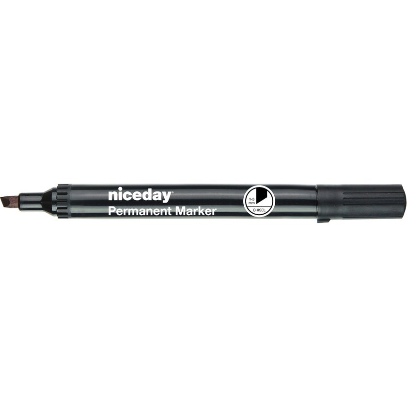 Märkpenna Niceday Permanent Marker med sned spets för märkning av alla slags ytor även glas, metall och trä. Alkoholbaserad, snabbtorkande och nästan luktfri.