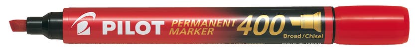 Märkpennan Permanent Marker 400 Broad från Pilot är vattenresistent. Kan ligga utan huv i 24 timmar utan att torka. Fäster på de flesta ytor. Nytt färgintensivt bläck.