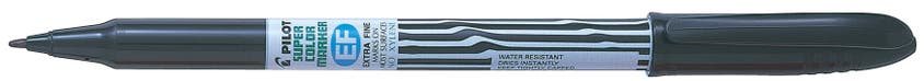 Märkpennan Pilot Super Color Extra Fine med alkoholbaserat bläck utan lösningsmedel som fäster på nästan alla underlag.