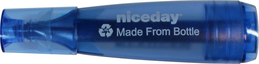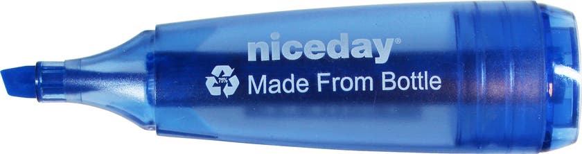 Niceday överstrykningspenna tillverkas av gamla PET-flaskor - 75% återvunnet material. Vattenbaserat och färgstart bläck.