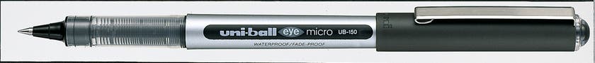 Eye Micro UB-150 är en rollerballpenna i hög kvalitet. Pennan har flytande, vattenfast och ljusäkta pigmentbläck. "Super Ink" står för att bläcket uppfyller kraven för arkivbeständighet enligt ISO 14145-2. Passar utmärkt om du är på jakt efter arkivbeständiga pennor. Tillverkad av 70% returmaterial.