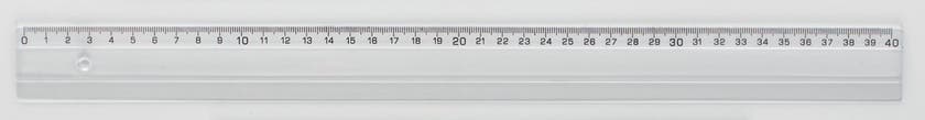 Linjal av glasklar plast med fasad kant och tuschkant. Linjalen är ett hjälpmedel när du behöver dra raka linjer och för att mäta raka (kortare) avstånd, och har även graderingar i millimeter och centimeter.