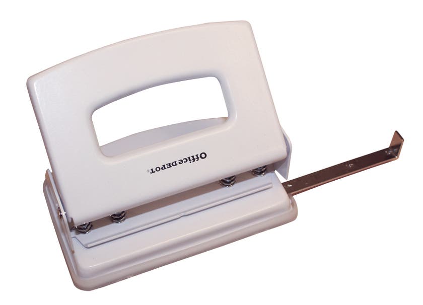 Hålslaget Office Depot med triohålslag (svensk hålstandard) i lackad metall.