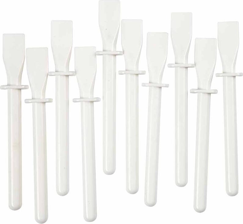 Limspatel - liten spatel i plast för att placera ut lim eller flytande färger. Rengöres vid behov med ljummet vatten och eventuellt med en mild tvål.