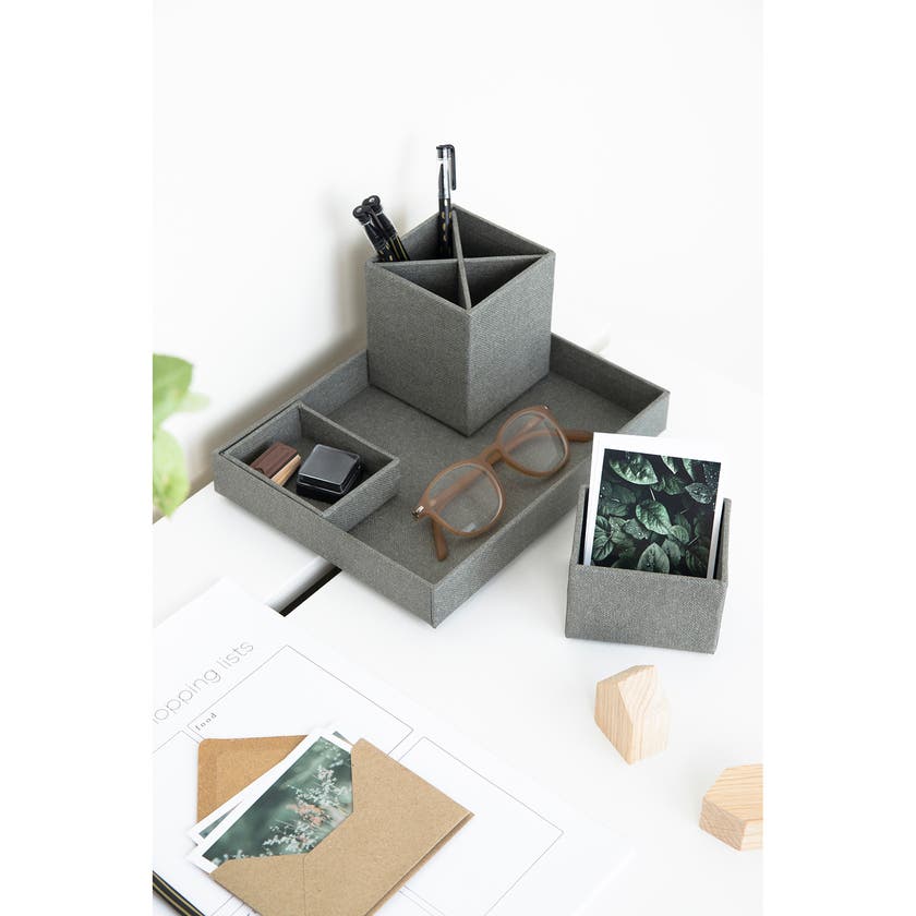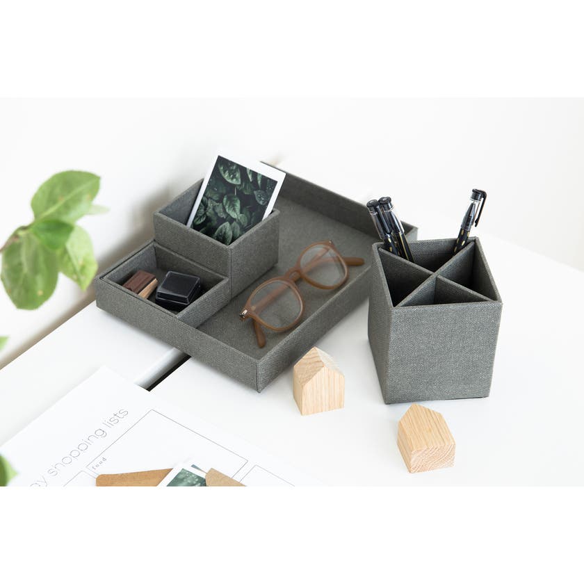 Pennställ Bigso Lena Canvas. Snyggt och stilrena skrivbordsstället Lena från Bigso, penn- & prylställ med totalt 4 fack, kan placeras direkt på skrivbordet men passar även på artikel 2360118 Håkan brevkorg. Passar in i alla stilfulla miljöer som på kontoret och på skrivbordet hemma..
