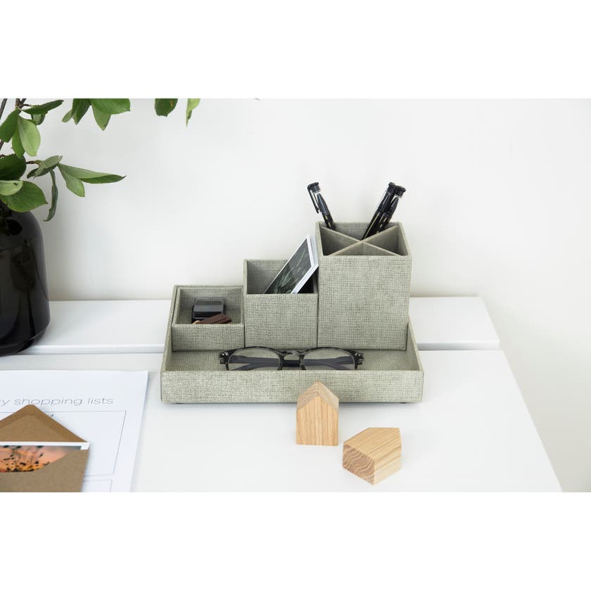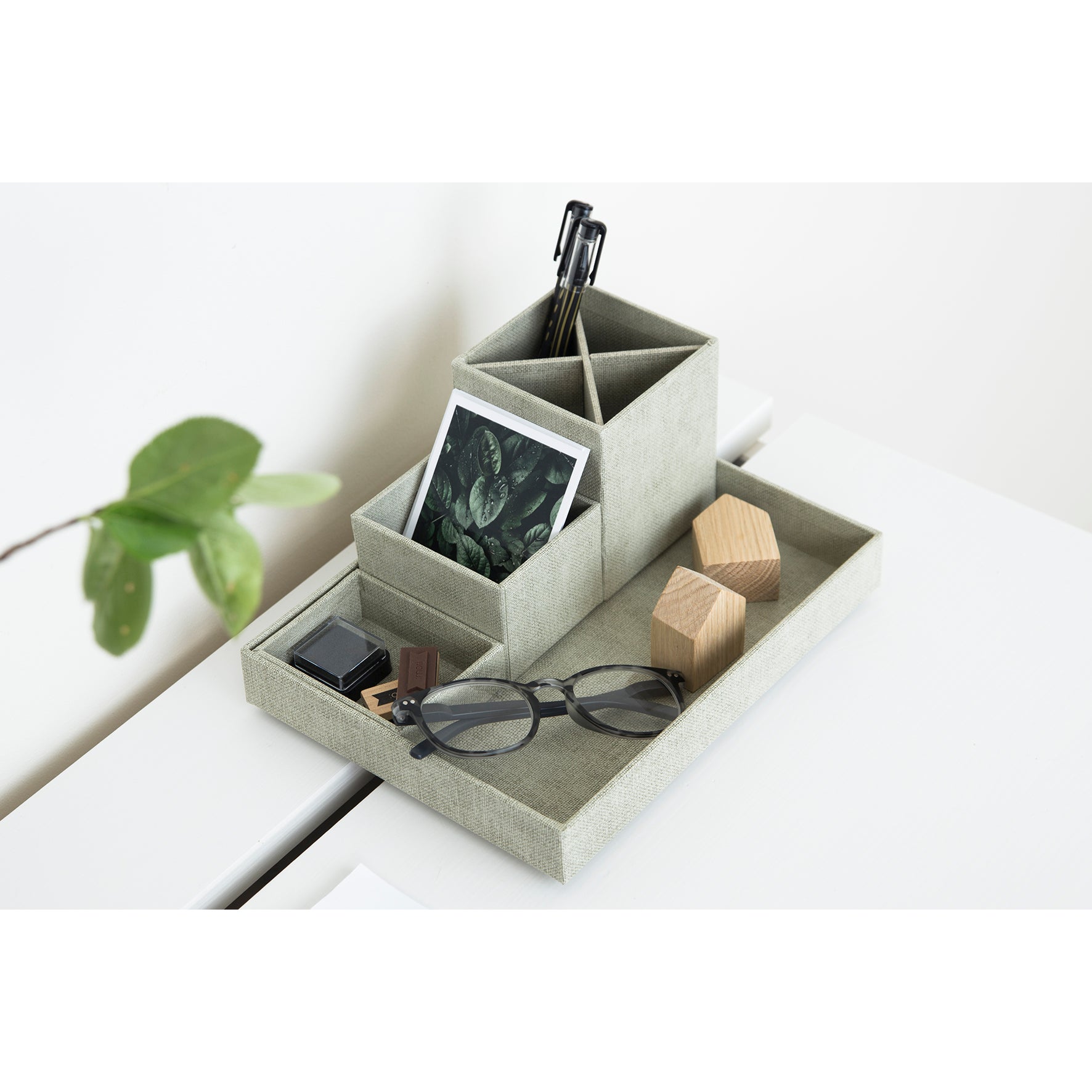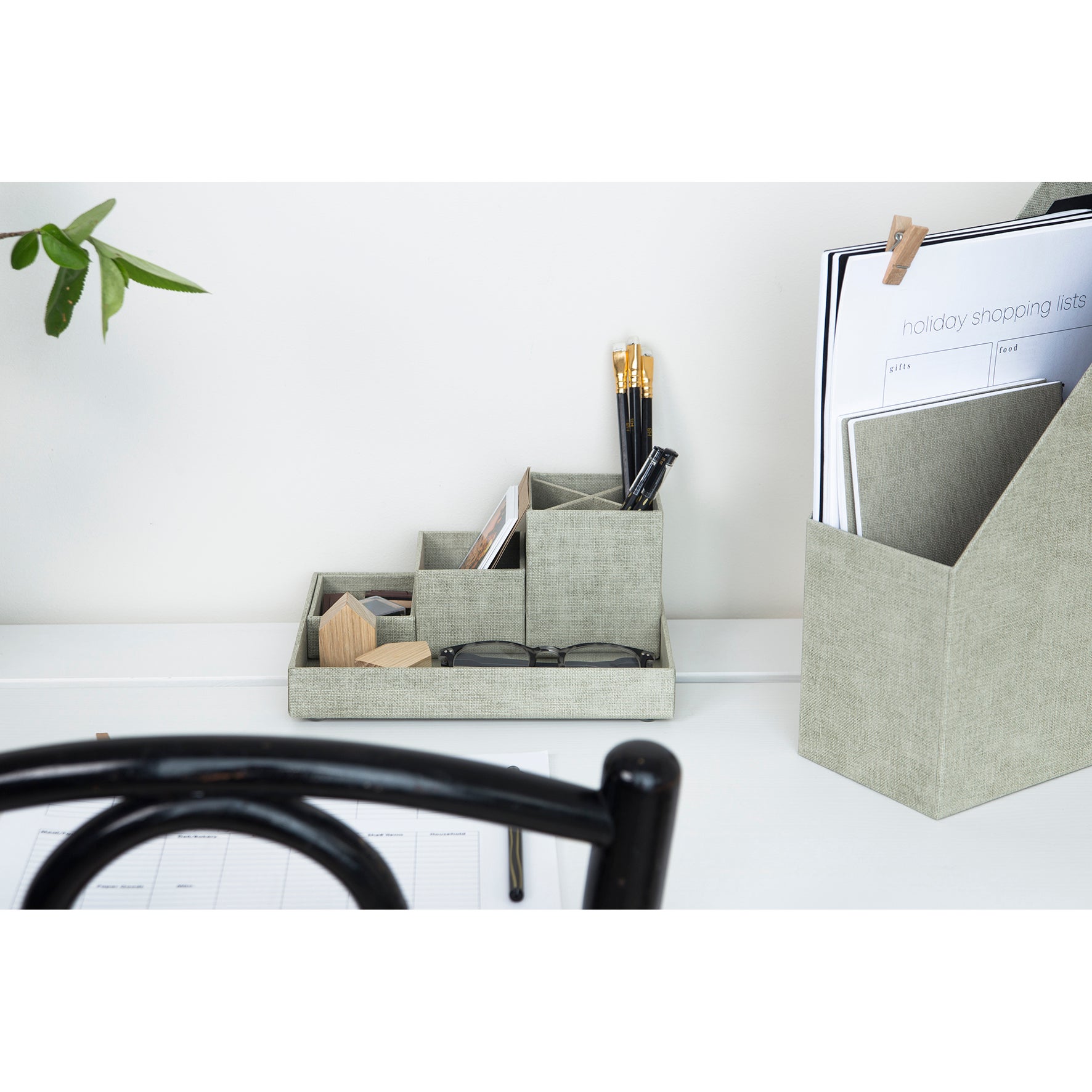Pennställ Bigso Lena Canvas. Snyggt och stilrena skrivbordsstället Lena från Bigso, penn- & prylställ med totalt 4 fack, kan placeras direkt på skrivbordet men passar även på artikel 2360118 Håkan brevkorg. Passar in i alla stilfulla miljöer som på kontoret och på skrivbordet hemma..