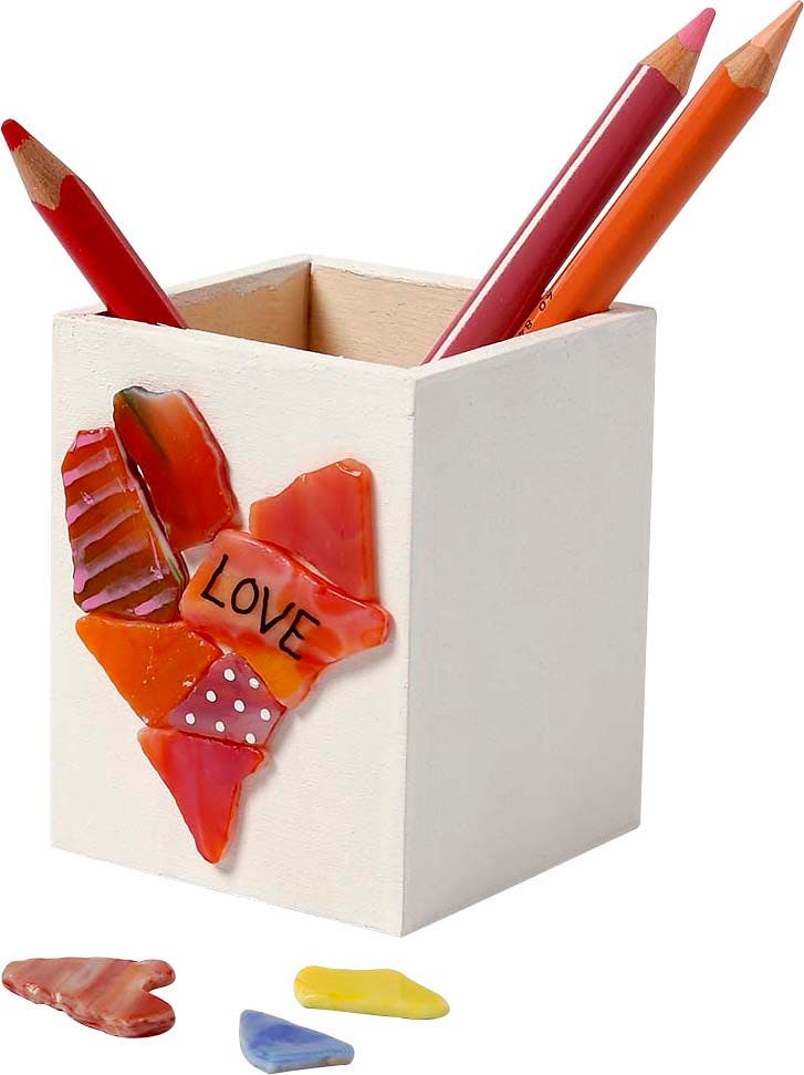 Fyrkantigt pennställ i plywood - ljust trä. Pyssla och dekoreras med både färg, pärlor, lera mm efter din egen fantasi och kreativitet. Skapa unika askar med olika utseenden. Här finns inga begränsningar - låt fantasin flöda!
