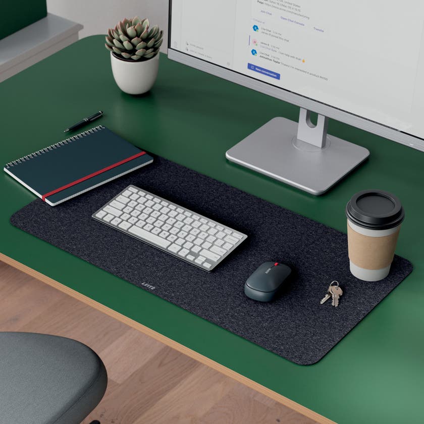Skapa en trivsam arbetsplats med Large Felt Desk Mat från Leitz – en elegant skrivbordsmatta i mjuk, naturlig filt med rundade hörn och sofistikerad finish. Den generösa ytan på 70x36 cm ger gott om plats för tangentbord, mus och anteckningsblock samtidigt som den skyddar ditt skrivbord mot repor och spill.