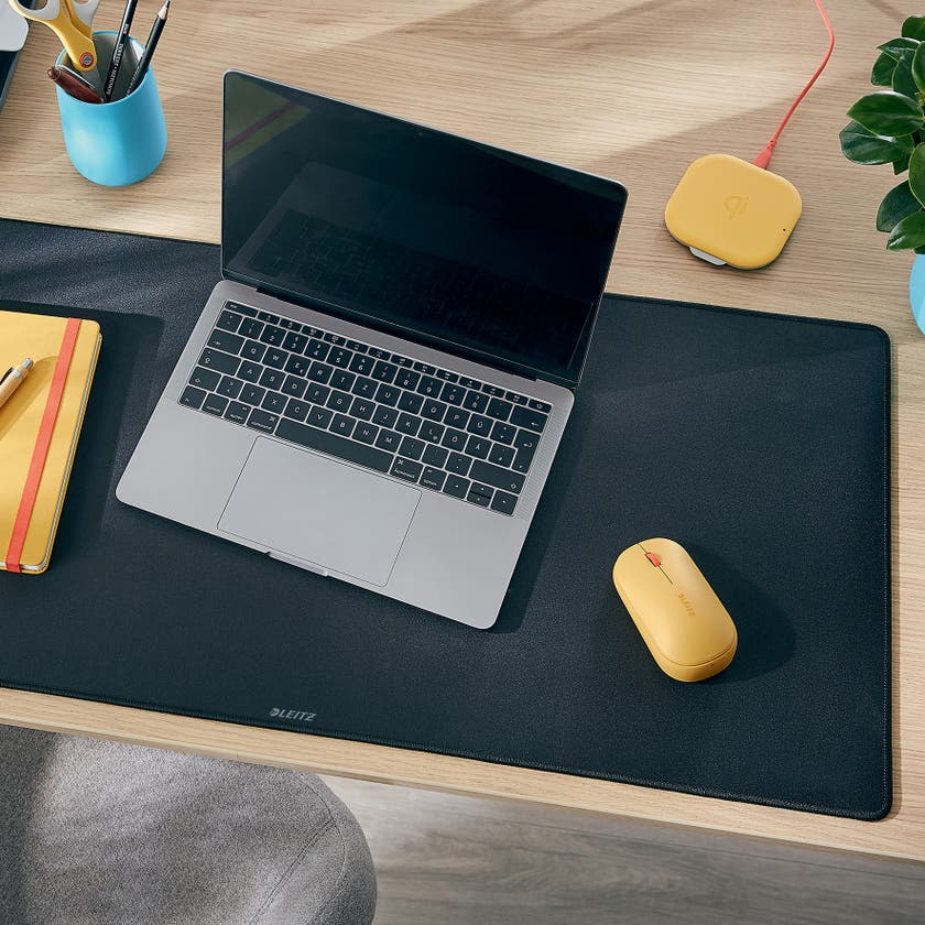 Skrivunderlägg Leitz. Känn dig som hemma var än din arbetsdag tar dig med Cosy-serien från Leitz. Med sin minimalistiska design och inbjudande matt färg kan du ge stil och färg åt din arbetsplats. Cosy Desk Mat skyddar ditt skrivbord från skador som orsakas av daglig användning, exempelvis spill och repor, samt håller det rent och fritt från märken. Det här multifunktionella skrivbordsunderlägget skyddar inte bara ditt skrivbord, utan den släta, matta ytan gör att det även kan användas som en musmatta. Fungerar bra ihop med alla laser- och optiska musspårningar och gör att du kan vara produktiv hela dagen. Ovansidan har ett glidfritt material som gör att föremål står stadigt och säkert. Enkel att rengöra i tvättmaskin i 30 °C.