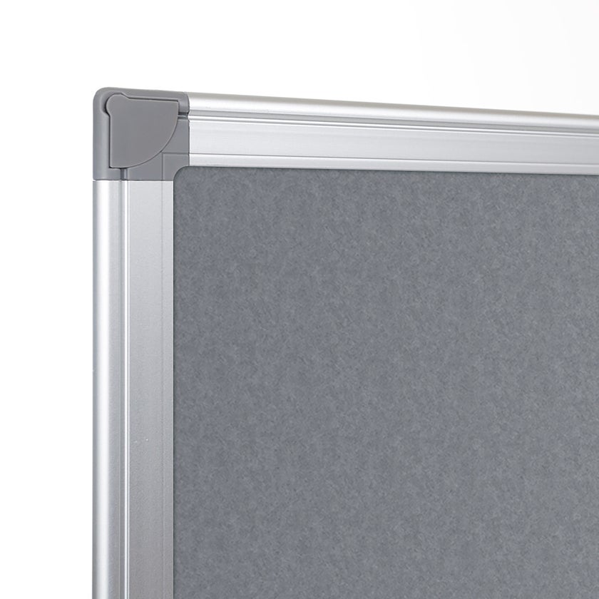 Office Depots anslagstavla med en yta i filttyg och ram av anodiserad aluminium. Hörndelar i plast. Upphängningsbeslag för väggmontage ingår. Anslagstavlan kan monteras både liggande och stående.