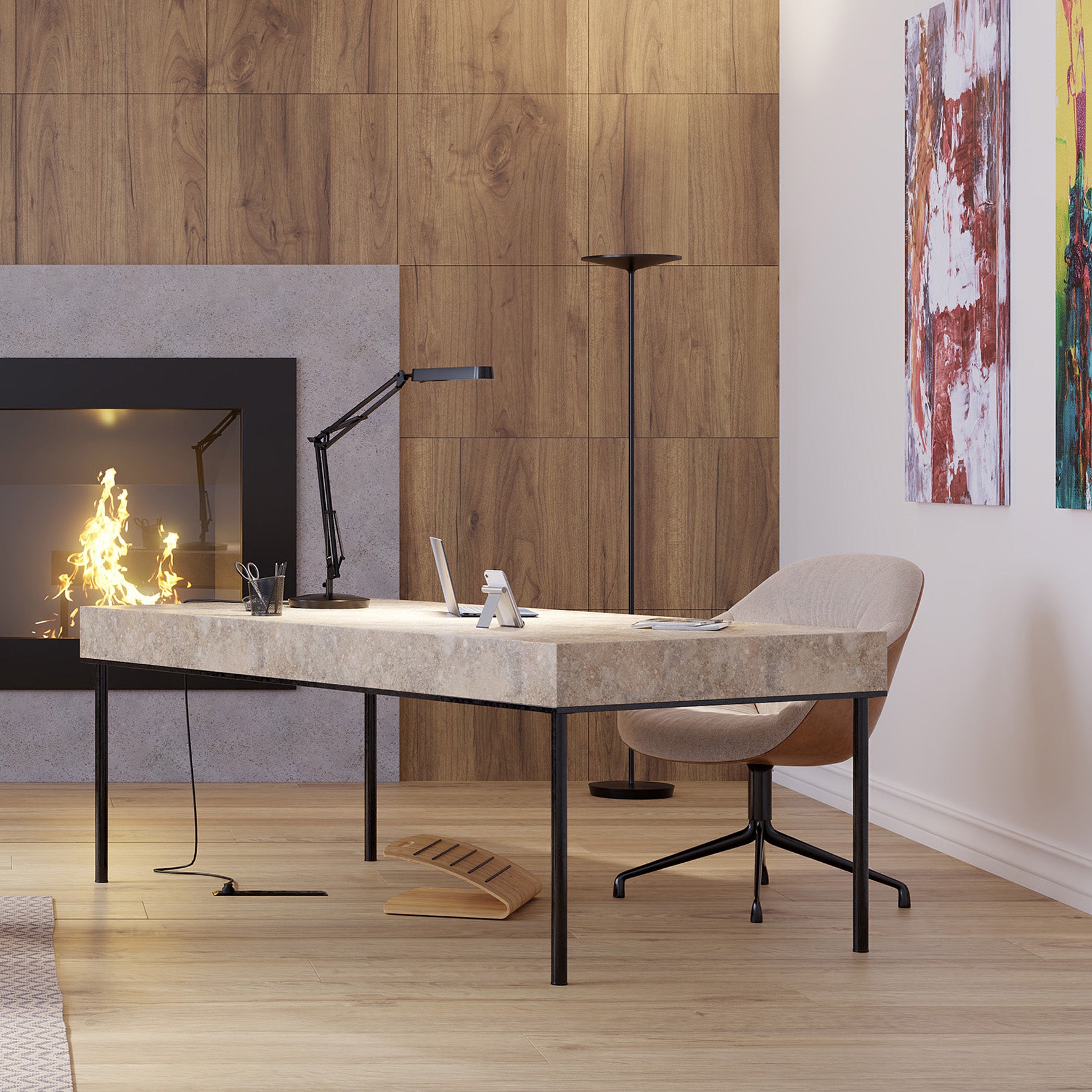 Lampans stilrena formspråk och tidlösa färgval i svart eller vitt gör den till ett naturligt inslag i alla typer av arbetsytor. Den bidrar inte bara med effektiv belysning utan också med en känsla av elegans och harmoni i rummet.