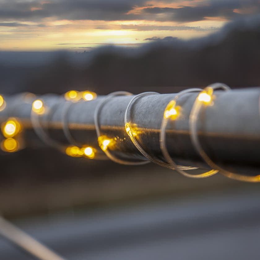 Kopplingsbar ljusslinga Dew Drop en tunn och platt slinga som är perfekt utnformad för att ge liv till buskar och träd under de mörka månaderna. En grön eller transparent kabel som är anpassad för utomhusbruk.