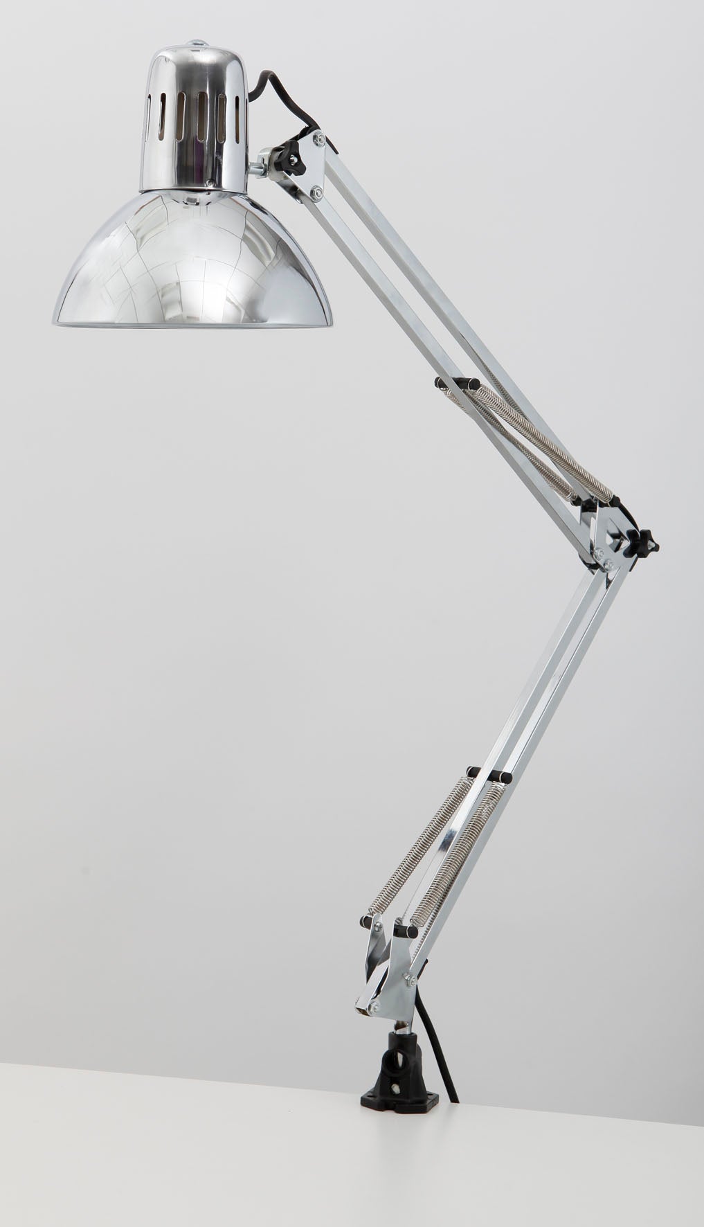 Den klassiska modellen levereras med strömbrytare på sladden, bordsfot diameter 20 cm samt bordsklämma med 55 mm grepp. Perfekt stabilitet tack vare den rundade foten med vikt - 3 möjliga placeringar är: Bord, Väggfästning, Klämma (kit medföljer).