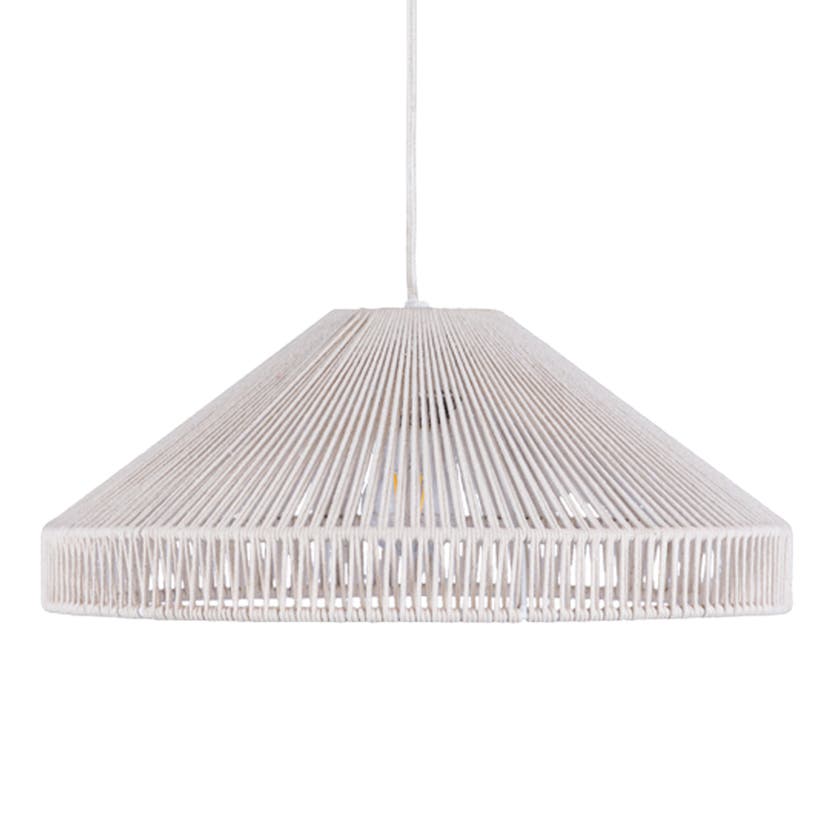 Palett är en modern taklampa med tydlig retrokänsla, där den ljust creamfärgade bomullen ger ett fräscht och mjukt uttryck i rummet. Det virade bomullsgarnet skapar ett dekorativt ljusspel med vackra skuggor på väggar och i tak. Lampan passar lika bra över matbordet som i vardagsrum, sovrum eller hall och ger en varm, inbjudande atmosfär. En 1,5 meter creamfärgad textilsladd ingår, vilket gör den enkel att placera och snygg även i rum där sladden syns.