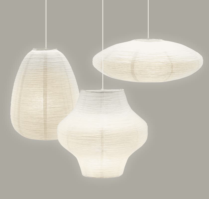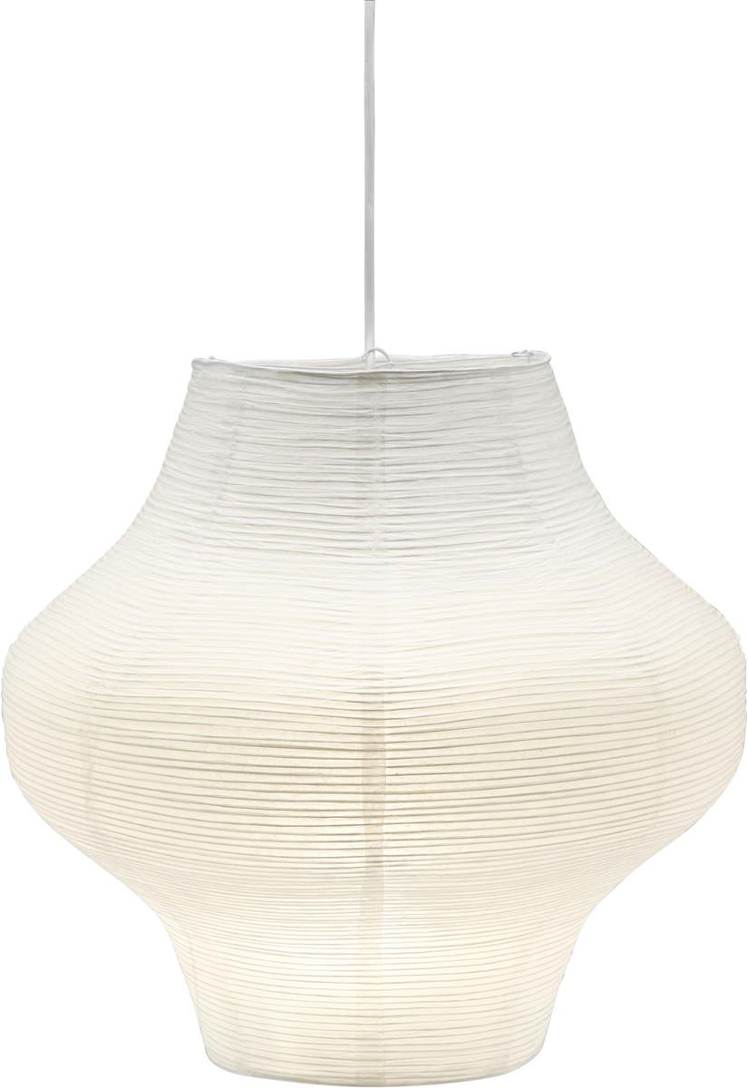 Takskärm / Taklampa Sani vit Ø445 mm. Rispappersskärm Sani med tät oregelbunden metalltråd som skapar ett vackert mönster. Sani är kalebass formad.