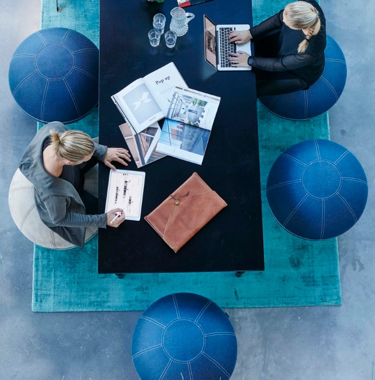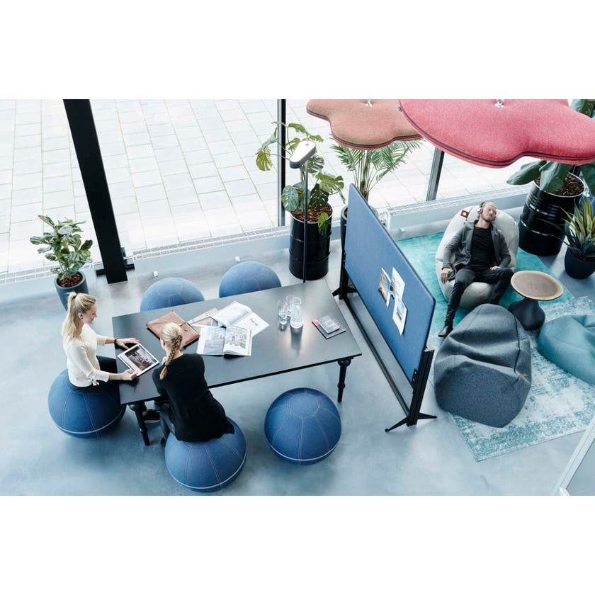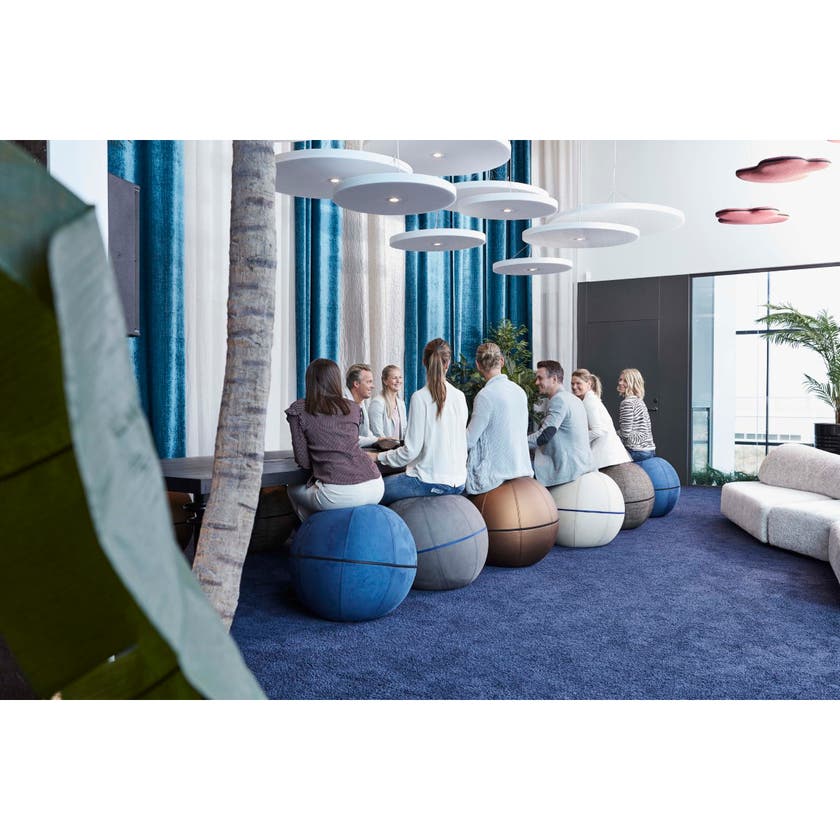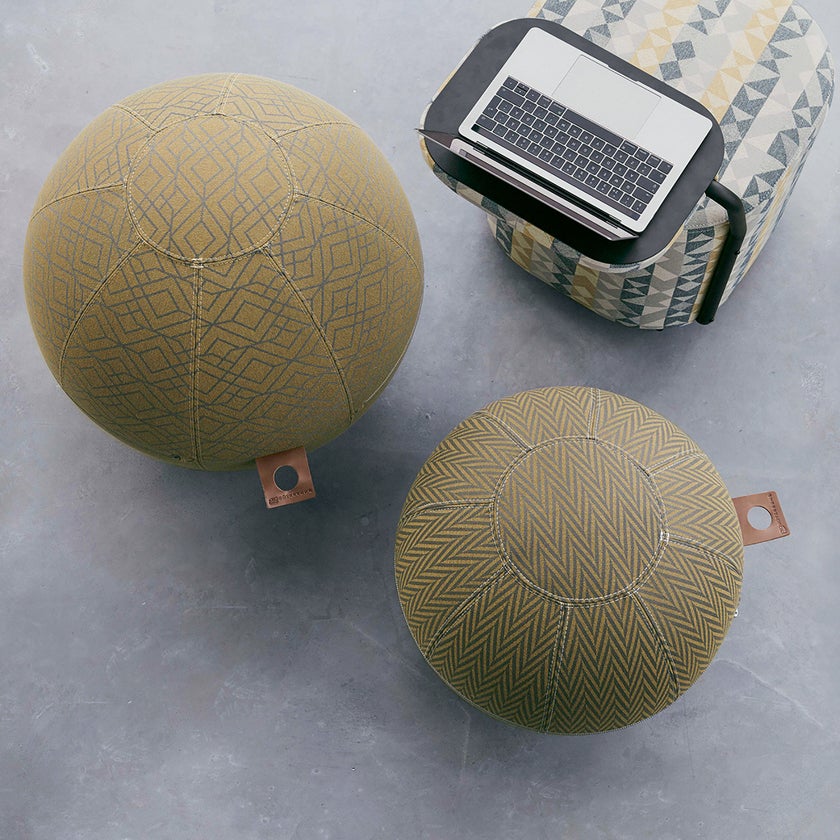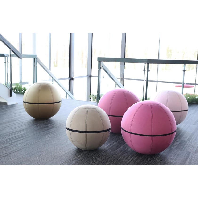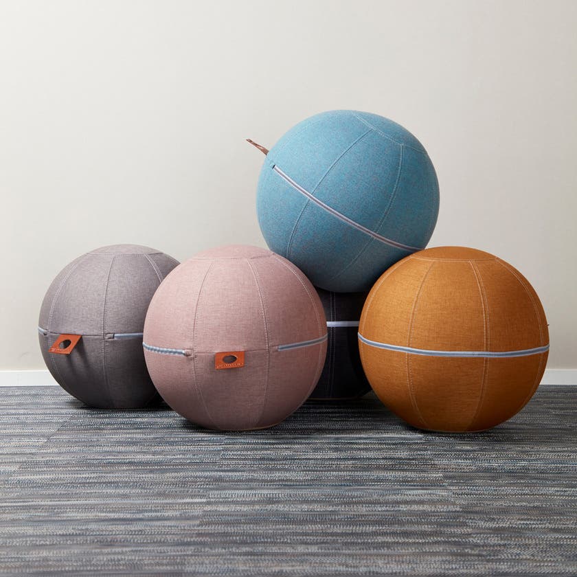 Balansboll Office Ballz är en ergonomisk sittmöbel med inbyggd pilatesboll som gör att du måste balansera för att sitta upprätt; rygg, bål och ben stärks och du får en bättre hållning.