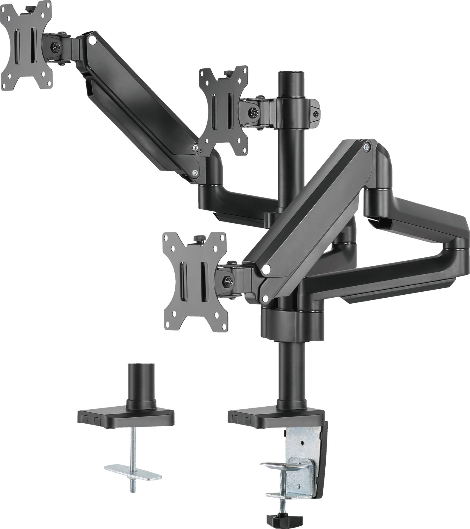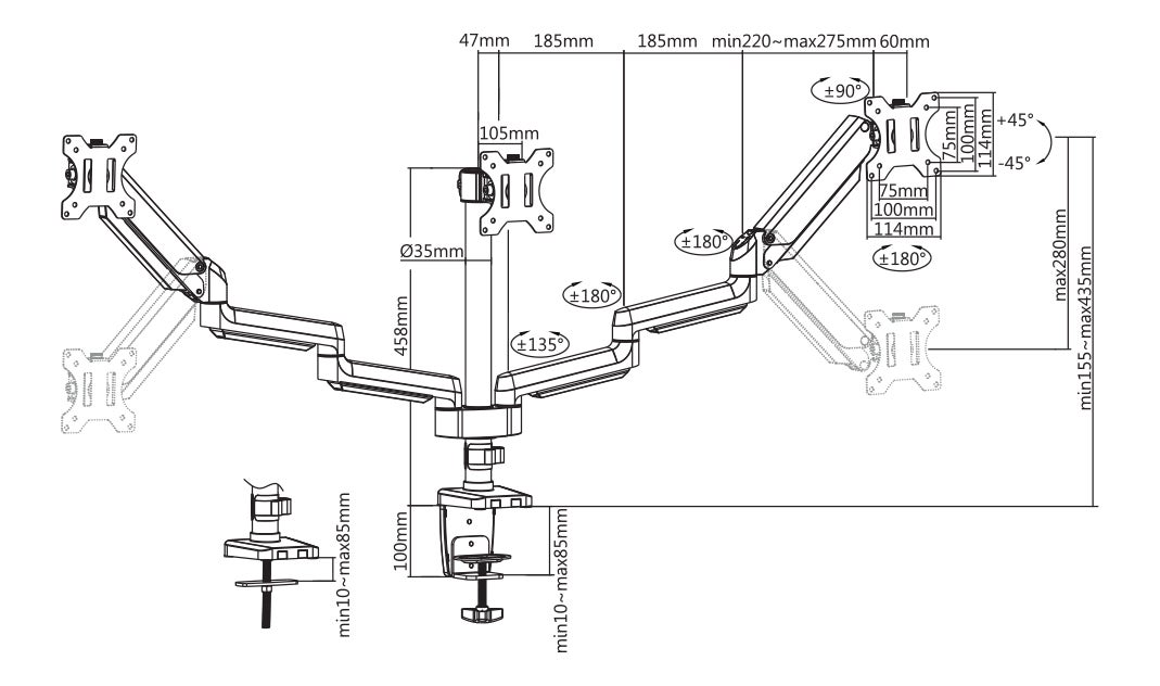 Deltaco Office Premium monitorarm med gasfjäder, aluminium, tiltbar, svängbar, rotera, 17""-27"". ARM-0352 har kortare armar avsedda att fungera perfekt för små arbetsområden. De flesta större fästen kan inte ge en lika sömlös look med dubbla skärmar på grund av mindre utrymme och deras längre armar. Med ARM-0352s korta armkonstruktion kan du fortfarande använda flera skärmar som sitter nära väggar eller i kontorslandskap med små utrymmen. Skrivbordsfästet är VESA kompatibelt med måtten 75x75,100x100.