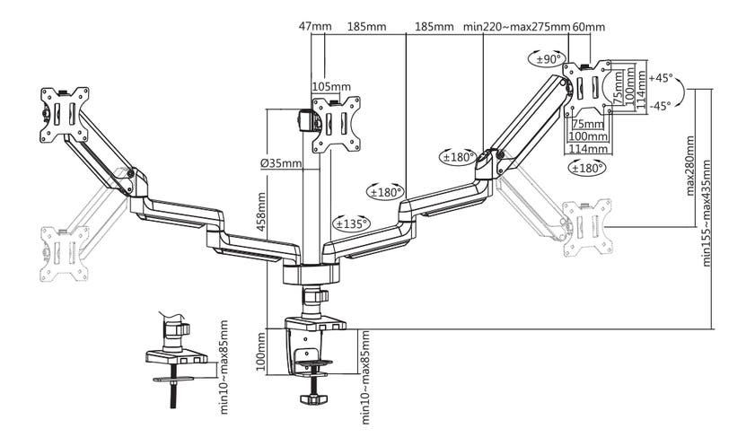 Placera dina skärmar snyggt samtidigt som du frigör arbetsytor och placerar skärmen i perfekt höjd och minska belastningen på dina nacke.