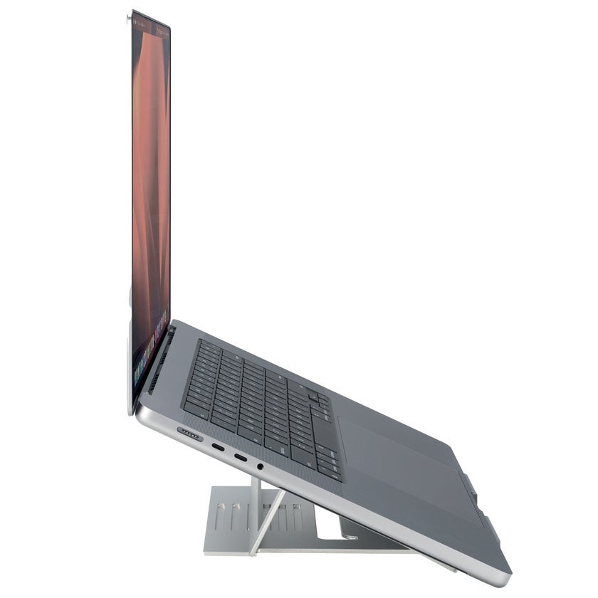Laptopstället Easy Riser™ från Kensington är anpassat för bärbara datorer. Stället är lätt att ta med och är tillverkat av slitstark, lätt och hållbar aluminium. Den har stöd för i princip alla bärbara datorer upp till 16 tum. Sex olika nivåer för höjd- och vinkeljustering för optimal visning. Öppen ventilation förbättrar luftcirkulationen och nedkylningen av den bärbara datorn. Easy Riser väger bara 0,4 kg och kan vikas platt för smidig transport vid resor.