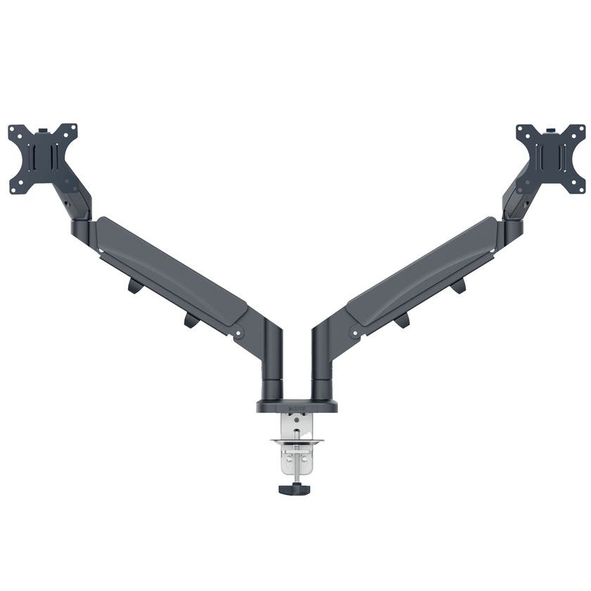 Bildskärmsstativet förblir stabilt i alla höjder och vinklar och kan enkelt växlas från liggande till stående läge. Designen är idealisk när utrymmet är begränsat och mycket skrivbordsutrymme sparas tack vare de anpassningsbara armarna som enkelt kan vikas platta, lutas och manövreras i valfri riktning med bara en hand. Ergonomiskt utformad för att främja välbefinnande och öka produktiviteten.