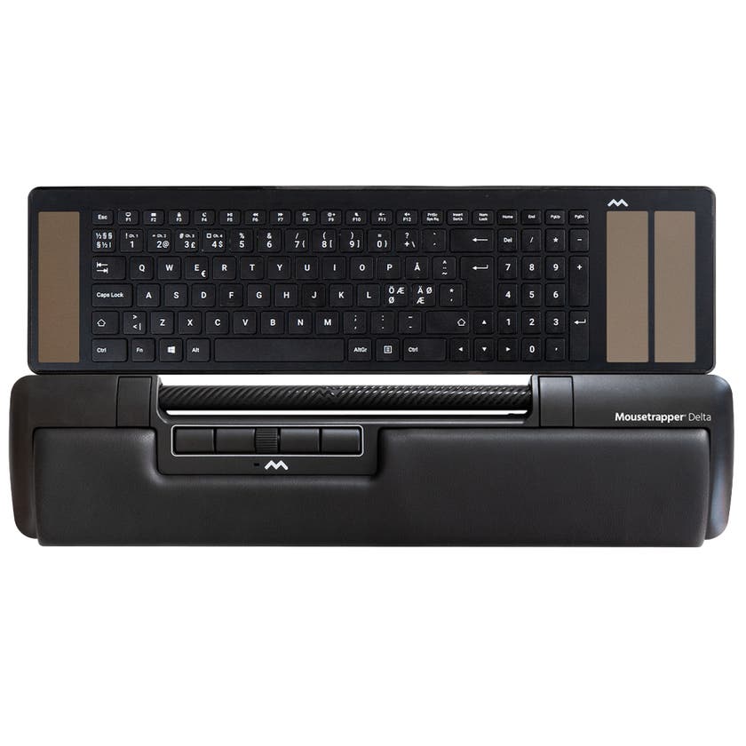 Mousetrapper Delta + Type Keyboard – komplett ergonomiskt mus- och tangentbordspaket. Upplev en arbetsstation utformad för både komfort och effektivitet. Ergonomisk mus Mousetrapper Delta ger en avslappnad, centrerad arbetsställning och sex programmerbara knappar som optimerar produktiviteten. Tangentbordet Type är skräddarsytt för att matcha Delta med trådlös anslutning, solcellsladdning och elva programmerbara knappar. Båda produkterna är tillverkade av återvunnen plast för ett hållbart val.