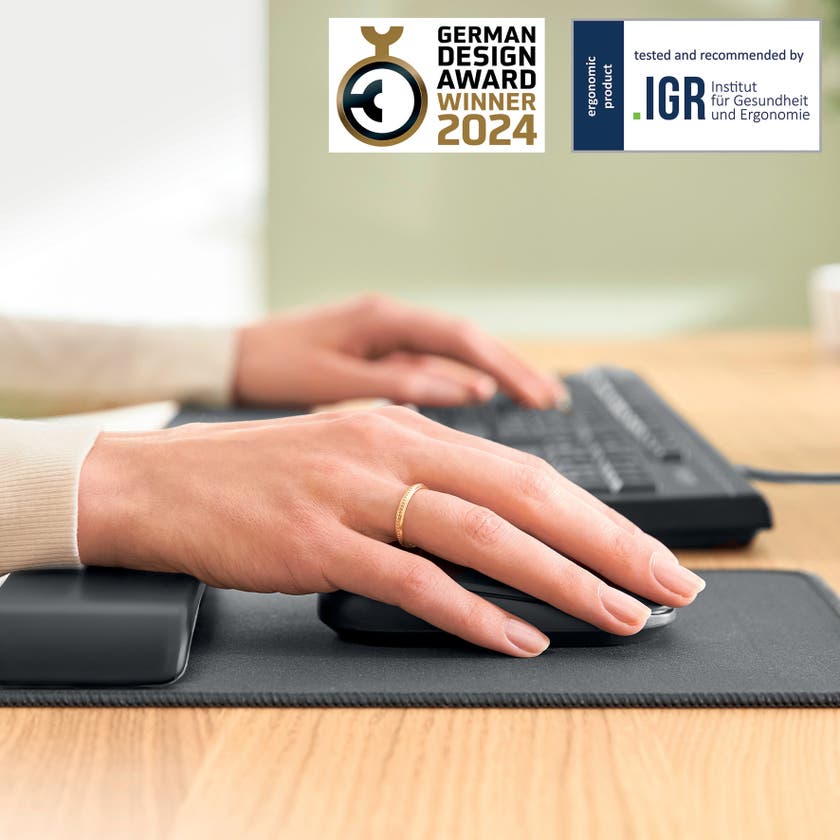 Leitz Ergo musmatta med handledsstöd är den perfekta lösningen för att skapa en bekväm och aktiv arbetsyta. Handledsstödet är certifierat av IGR (Institutet för hälsa och ergonomi) och är utformat för att ge maximal komfort när du sitter eller står. Kombinerar ergonomisk design med mycket bra spårning för både optiska möss och lasermöss.