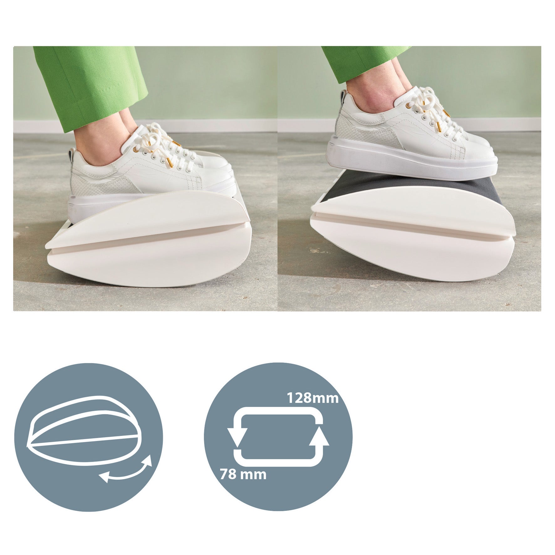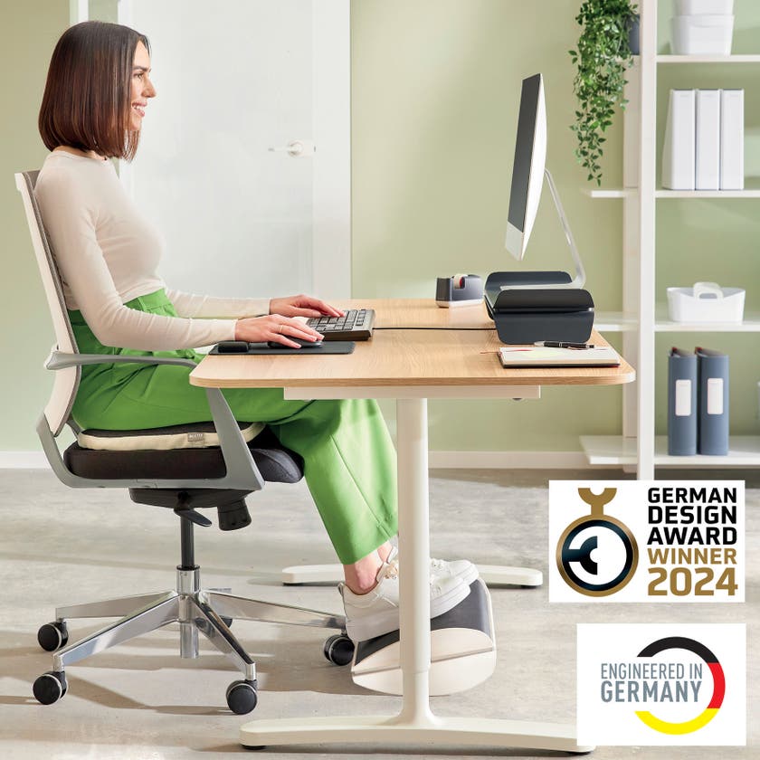 Det justerbara fotstödet har två höjdinställningar med både en platt och böjd plattform för att säkerställa ergonomisk hållning och position. Tack vare den gungande rörelsen hålls du aktiv medan du arbetar, vilket främjar en sund blodcirkulation och ökar produktiviteten. Med sin minimalistiska design och matta yta kan detta eleganta fotstöd ha en positiv inverkan på välbefinnandet genom att enkelt skapa den perfekta positionen för aktivt arbete. Kombinera med andra Leitz Ergo-produkter för en inbjudande och flexibel arbetsyta som hjälper dig att vara aktiv och produktiv hela dagen.