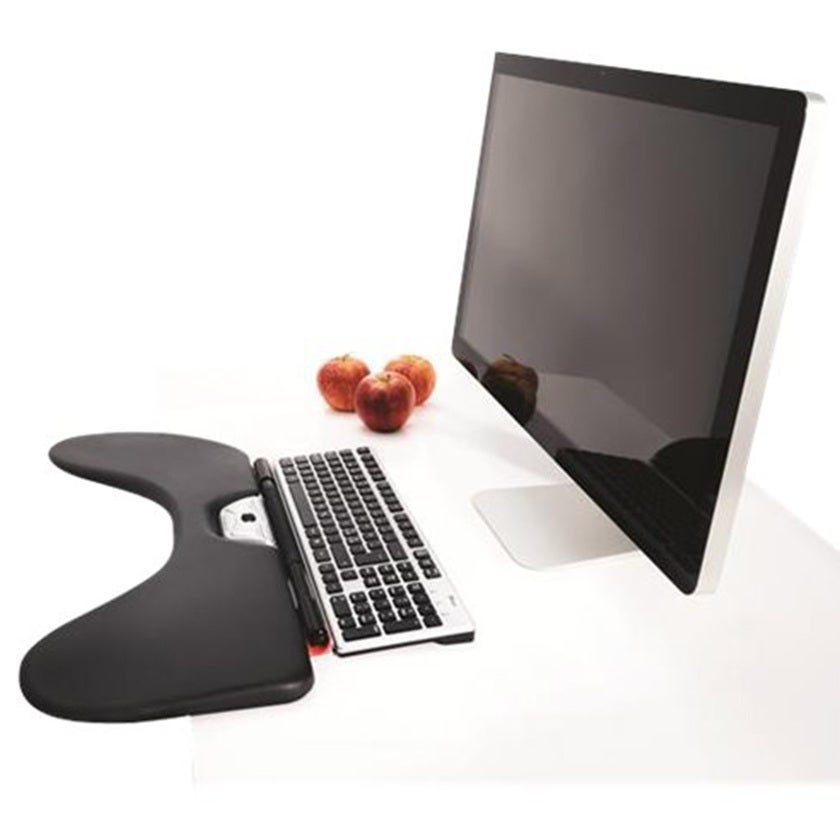 RollerMouse Red Armstöd är ett originalintegrerat tillbehör till RollerMouse Red som ger fullt stöd för både händer och armar. Armar och axlar bibehåller en mer neutral och avslappnad position så att du kan arbeta avslappnat och smärtfritt, även under långa arbetsdagar. Armstödet Red monteras enkelt på skrivbord med en kant på 2,54–5 cm och är perfekt för sitt-stå-bord.