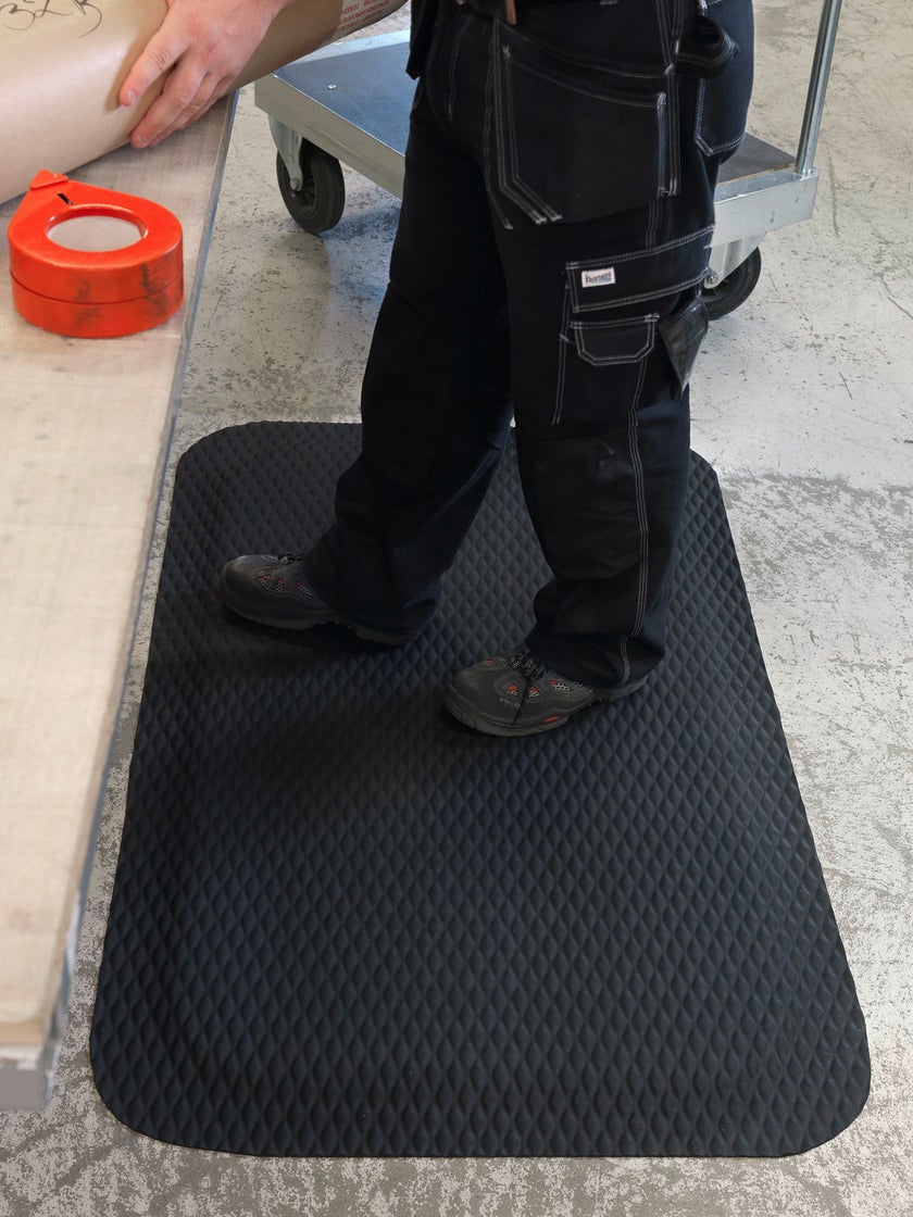 Ståmattan Yoga Fashion är en dämpande och avlastande arbetsplatsmatta av nitrilgummi. Med ett tåligt ytskikt som klarar så väl vassa klackar som oljor, fett och kemikalier. Den textilliknande ytan gör mattan halksäker.