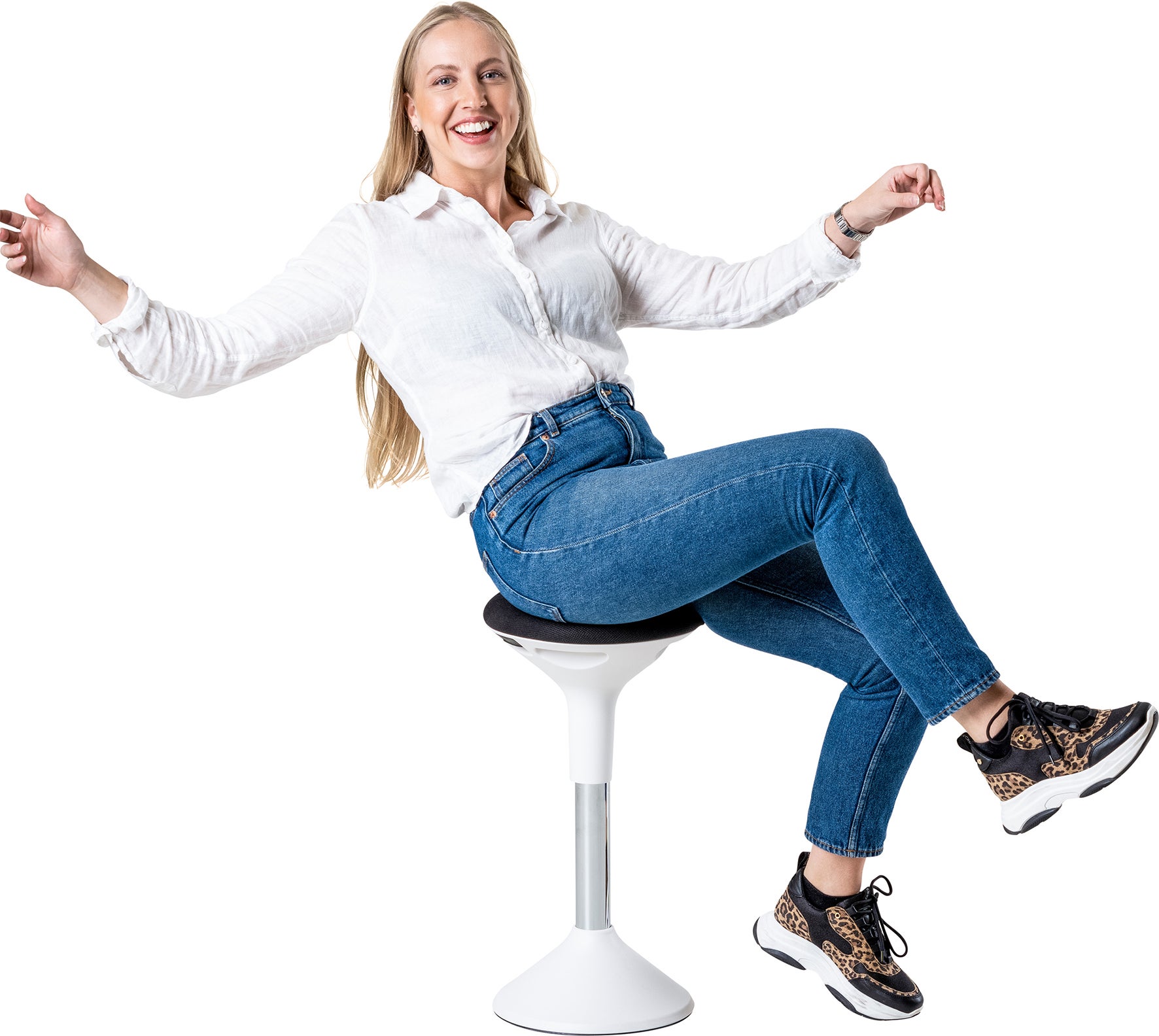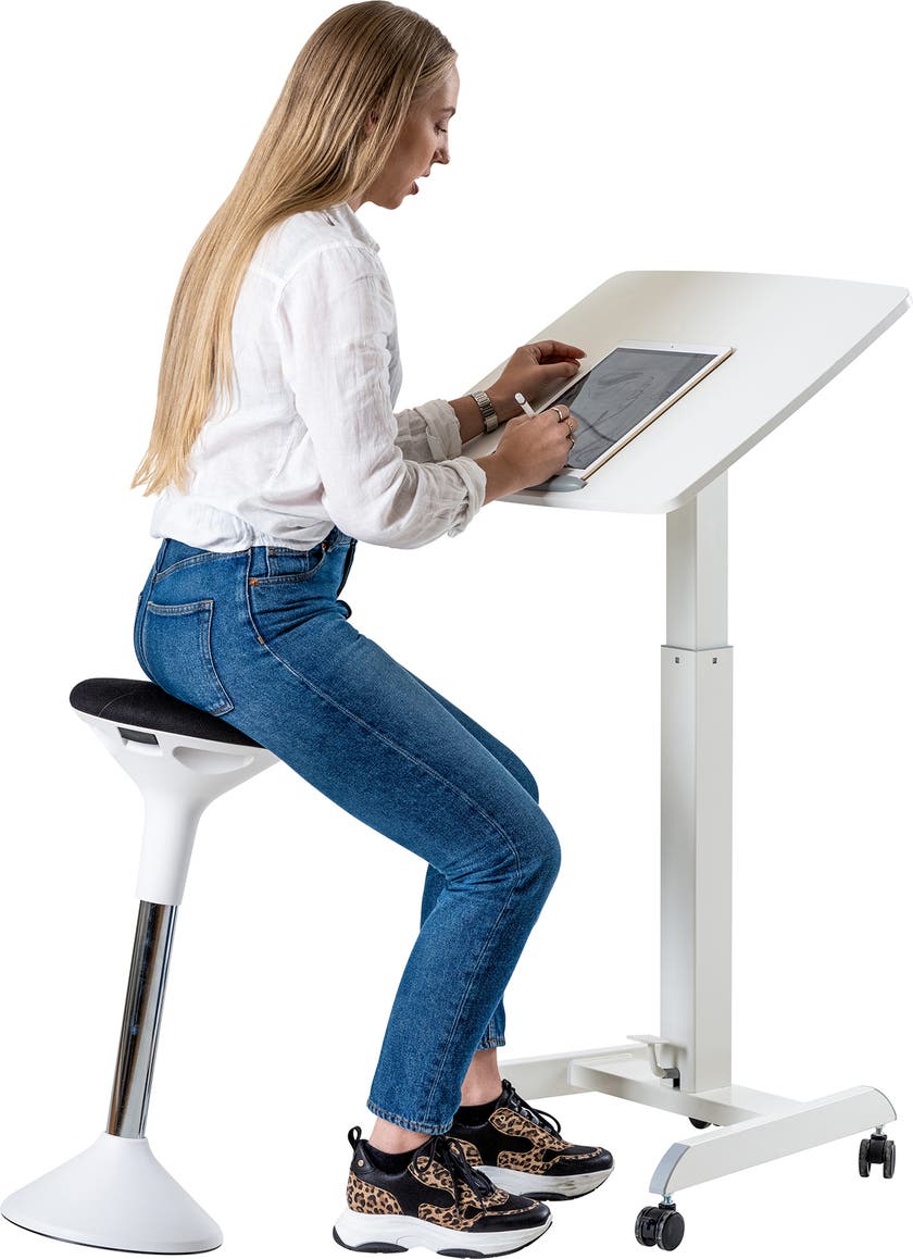 Balansera gärna med fötterna på den nedre delen av stolen, du balanserar då på samma sätt som när du är ute och cyklar eller ute på en ridtur. En aktiv stol lindrar ryggbesvär och stärker kroppen, detta ger naturligtvis många fördelar. Stolens aktiva funktion skapar ett intuitivt träningspass vilket ger dig bättre hållning och en starkare kropp. Tack vare högsta kvalitet och en enkelhet i stolens funktioner, höjden justerar du enkelt med ett handtag under sittdynan, kommer SUN-FLEX®Active att vara en naturlig del av den aktiva arbetsplatsen. Variera gärna ditt aktiva sittande på SUN-FLEX®Active med ett aktivt stående på SUN-FLEX®StandMat™Boost för en optimal arbetsplats.