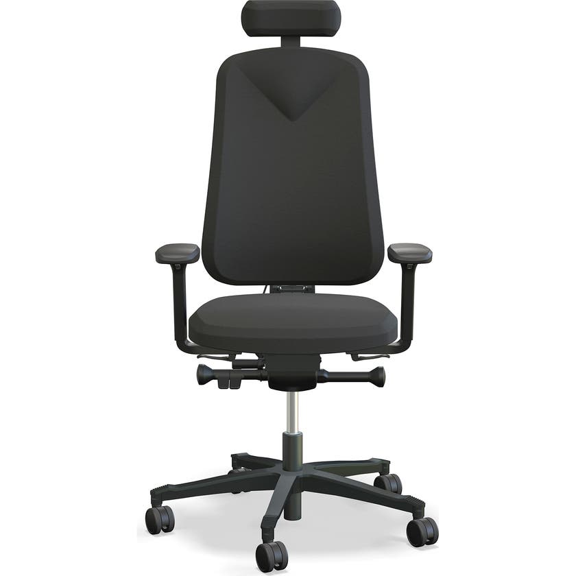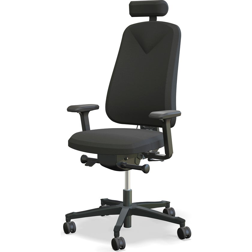 Kontorsstol Höganäs 290 med arm/nack-stöd. Höganäs 290 är den största i 2-serien av ergonomiska arbetsstolar från Lanab Group. Stolens sits och rygg är större än på Höganäs 280 men annars så är funktionerna samma.