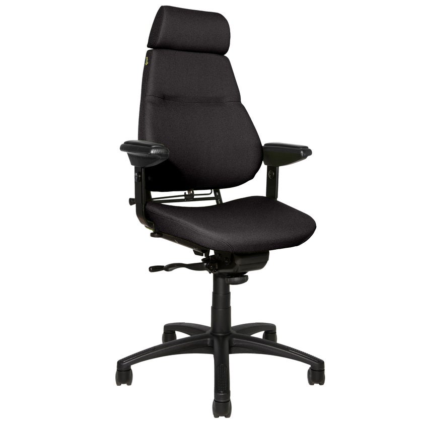 Levereras komplett med armstöd som är justerbara i höjd-/sidled och nackstöd, justerbart i höjd samt vinklingsbart.