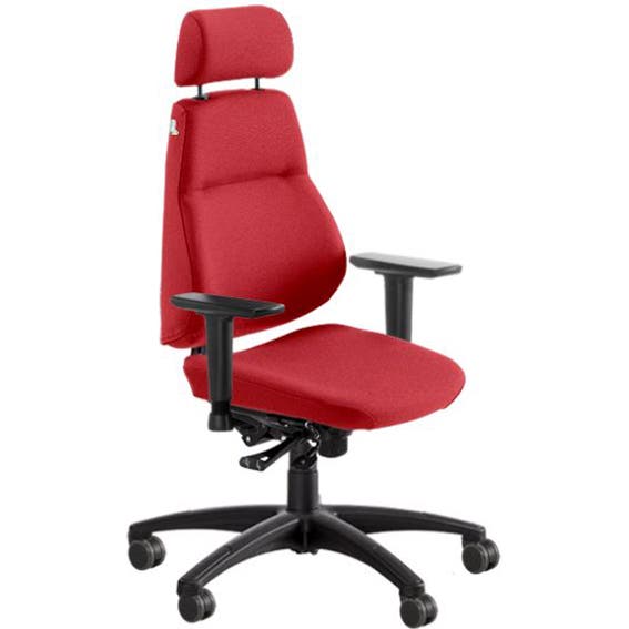 Lämplig för långt sittande med krav på korrekt sittställning vid skrivbordet. Inget problem att byta användare eftersom justering till nya positioner görs med enkla handgrepp. Sittdynan är uppbyggd i olika skikt med naturtagel närmast tyget och perforerad så att luftväxling sker. Detta gör att kontorsstolsitsen inte känns varm när man sitter länge. Arbetsstolen levereras komplett med ställbart nackstöd och ställbara armstöd.