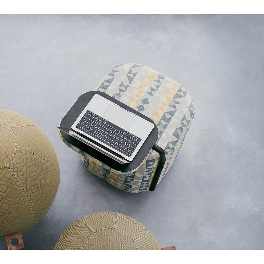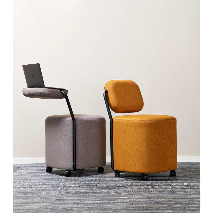 iQseat är en multifunktionell, lekfull och flexibel pall monterad på hjul för enkel ommöblering. Det bekväma ryggstödet vrids enkelt runt till bord vid behov. Designad av Henrik Kjellberg och Jon Lindström från o4i Design Studio. Svarta och vita detaljer.