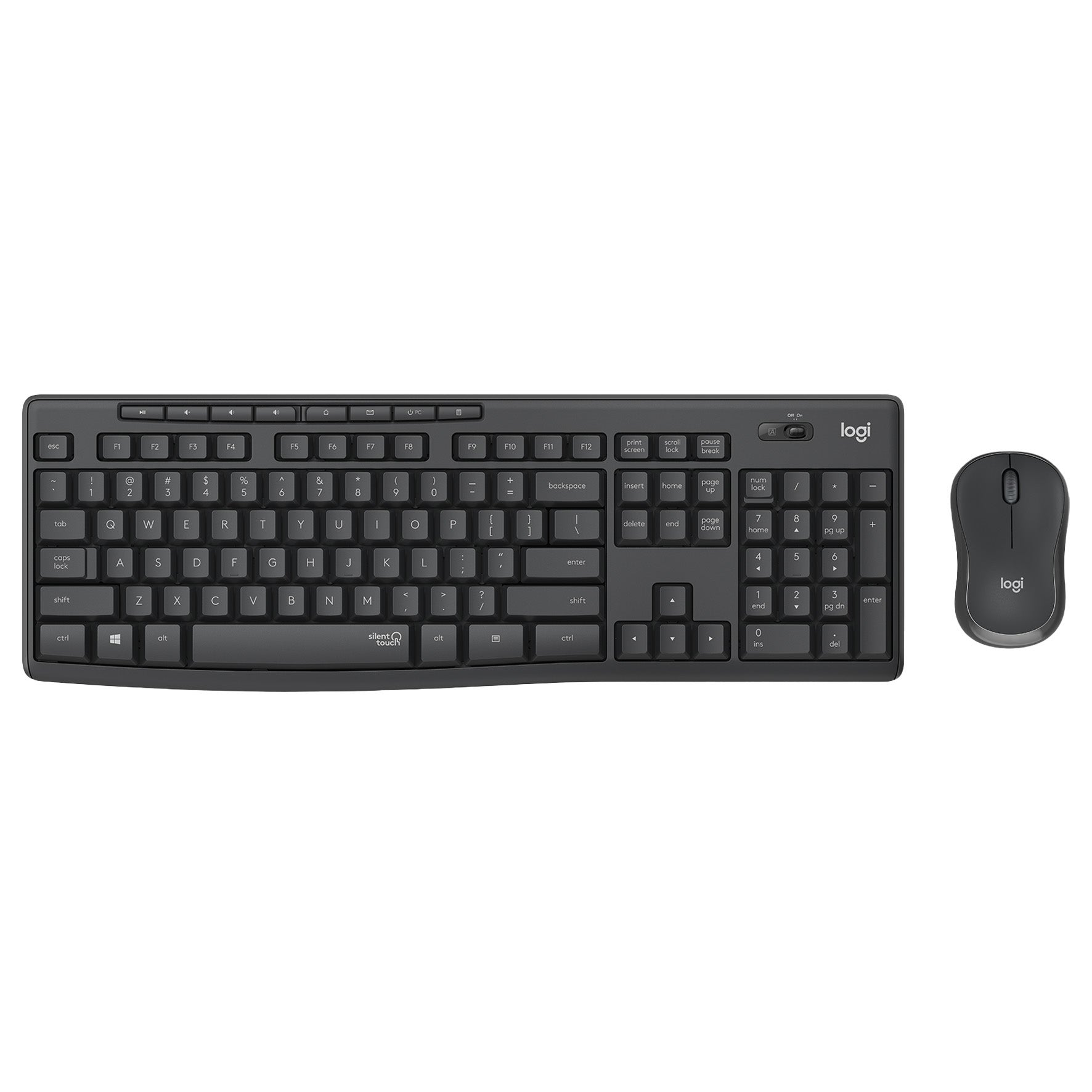 Förbli fokuserad på ditt arbete och minska störande ljud med tangentbord och datormus MK295 från Logitech. Den tysta, trådlösa kombinationen har SilentTouch, en exklusiv Logitech-teknik som eliminerar mer än 90% av ljuden från tangentbordet och musen. Det är samma klick- och skrivkänsla som hos världens mest sålda kombination, fast utan störande klick- och skrivljud. Paketet innehåller tangentbord med 2xAAA-batterier, datormus med 1xAA-batteri och USB-mottagare.