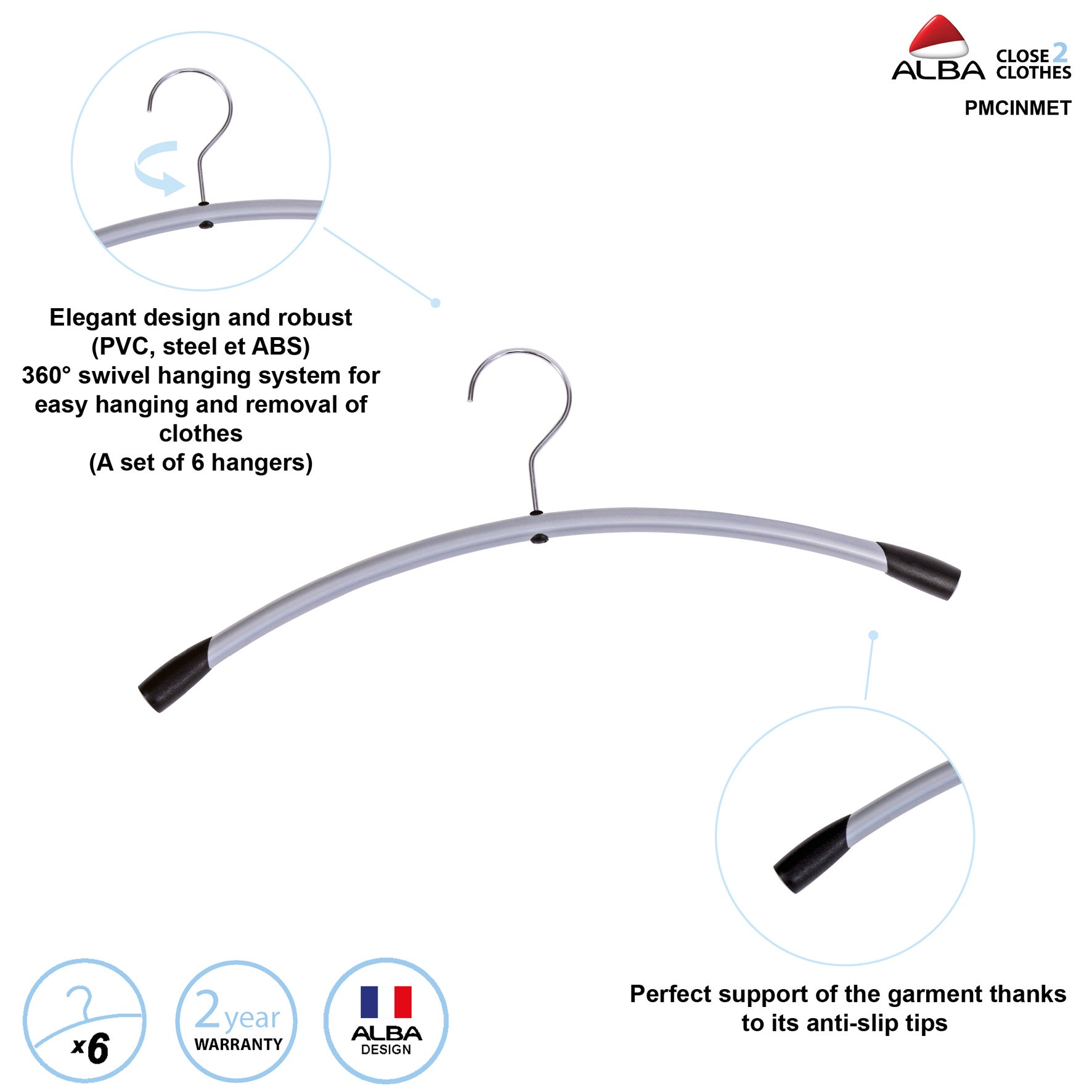 Den robusta konstruktionen i metall klarar även tyngre plagg som kavajer, rockar eller ytterjackor, vilket gör galgen väl lämpad för både kontor, omklädningsrum och hemmabruk. Förpackningen med 6 galgar ger en praktisk bas när du vill skapa en enhetlig och välorganiserad klädförvaring.