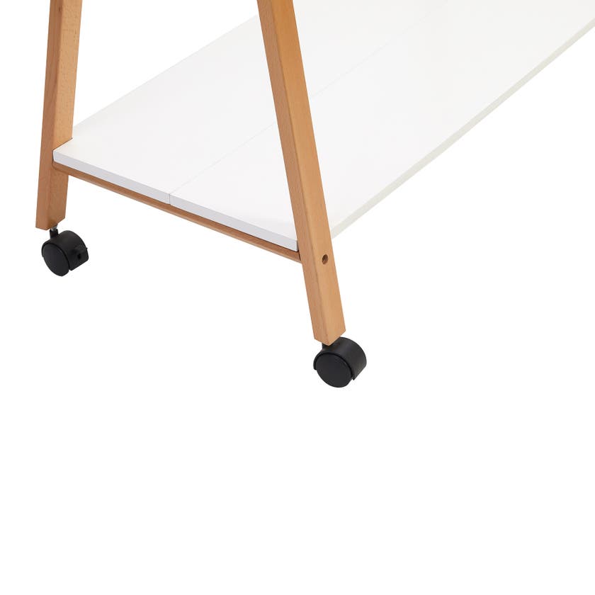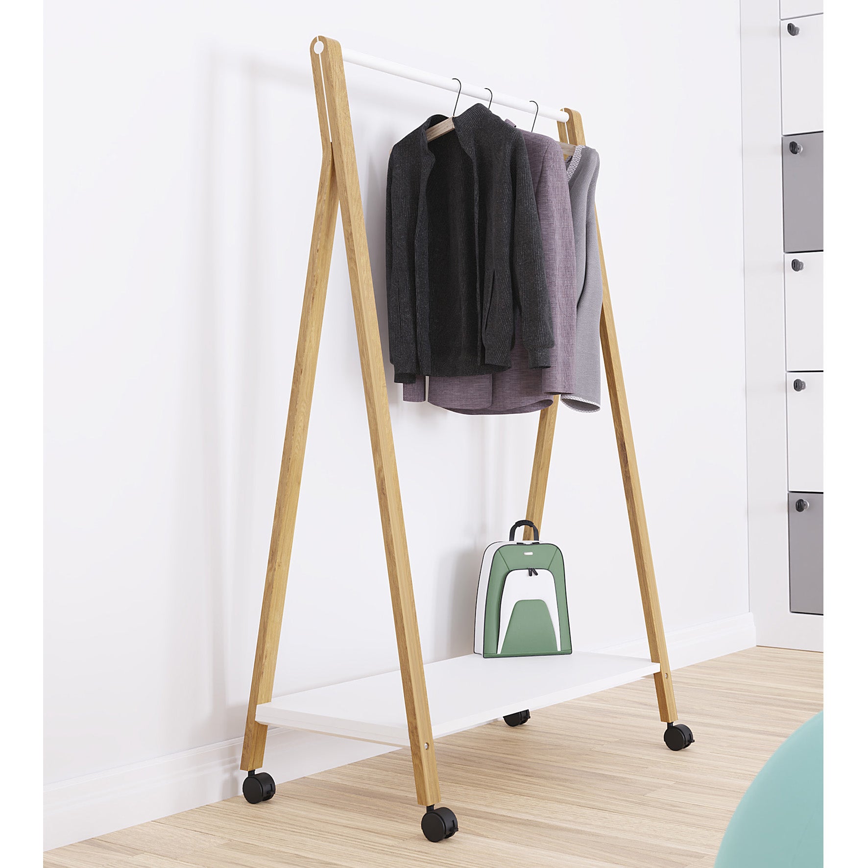 Med fyra smidiga hjul, varav två låsbara, kan klädställningen enkelt flyttas och säkras på plats vid behov. Det gör den särskilt användbar i flexibla och dynamiska miljöer där ommöblering sker ofta.