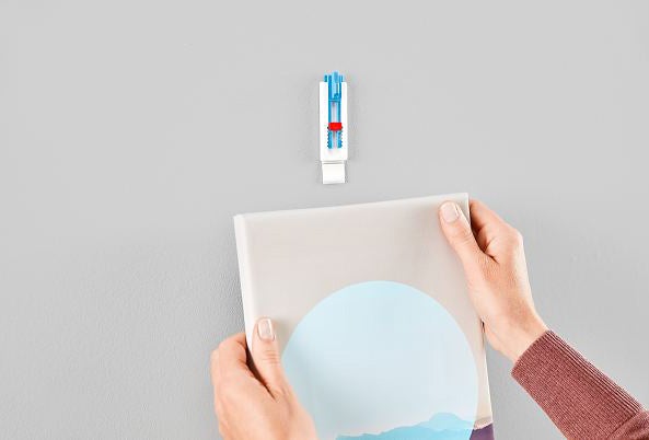 Du behöver inga verktyg för upphängningen och det blir inga skador på väggen. Tack vare Powerstrips®-tekniken kan du enkelt och bekvämt sätta upp den självhäftande spiken, ta bort den igen och återanvända den med en ny självhäftande remsa. Varje spik håller för upp till 1 kg. Den självhäftande spikens metallspets gör att duken sitter säkert. Eftersom längden på spikhuvudet kan justeras kan du alltid visa upp dina foton och andra prydnadsföremål precis på det sätt du vill. Den självhäftande spiken kan både tas bort utan att lämna spår och återanvändas.