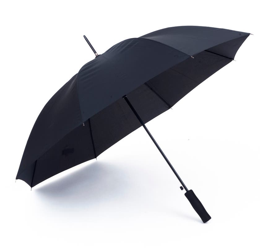 Ett ordentligt och mycket prisvärt & väldigt stadigt 8-panels bärbart paraply med automatiskt uppfällning, rakt kraftigt svart stålskaft och ett bekvämt handtag av EVA-Foam.