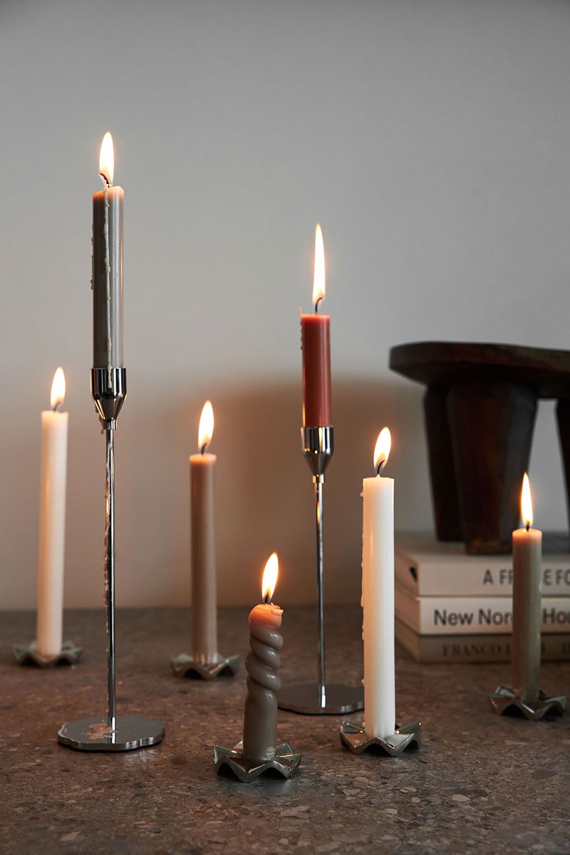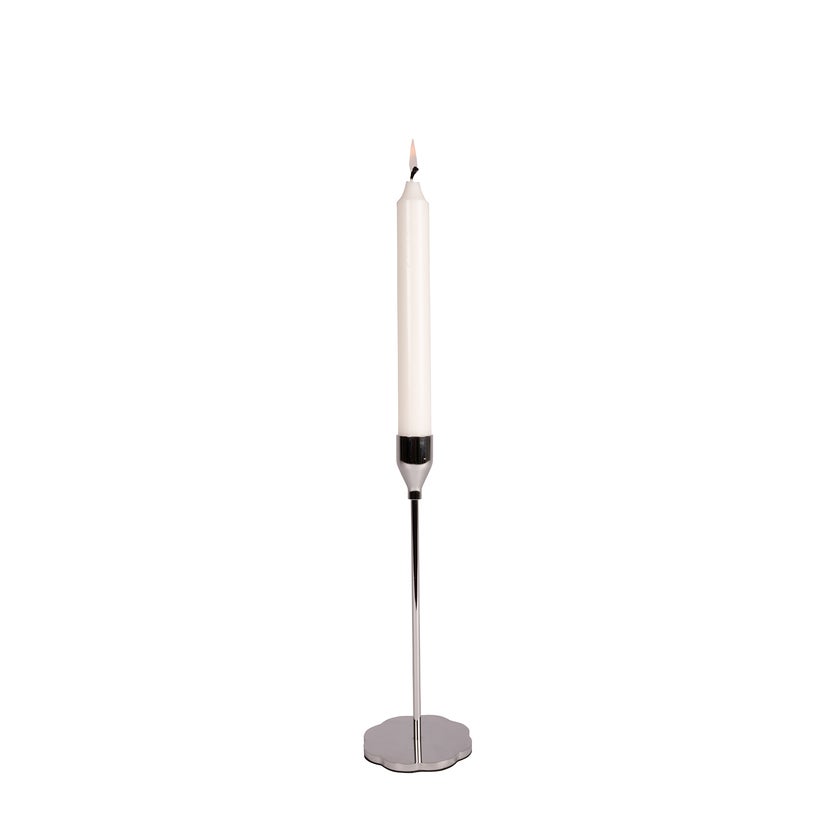 Ljusstake Siri liten silver. Ljusstaken Siri har en klassisk design som passar till det mesta och lätt gör sig hemmastadd i de flesta hemmen. Basen på ljusstaken har samma organiska blomform som Signe och för tankarna till naturen. Siri finns i två höjder som tillsammans skapar liv. Materialet är rostfritt stål som och har en fin putsad yta. Passar som singel eller i en grupp. Fin på matbordet och är en perfekt present både att få och ge bort.