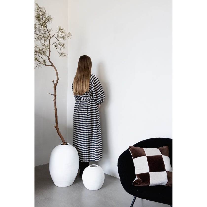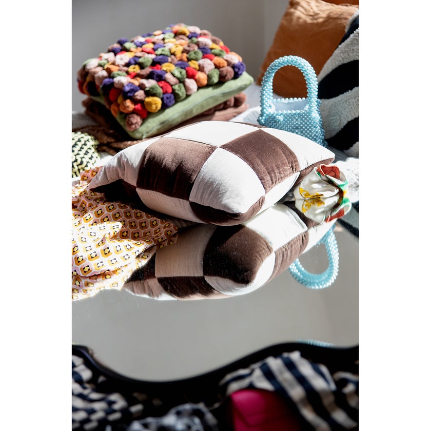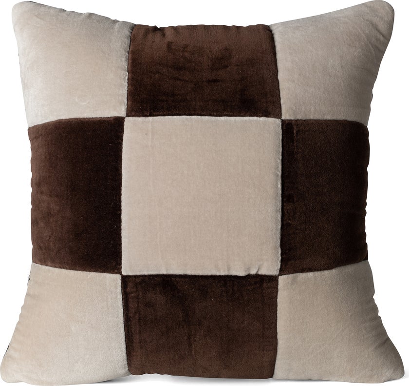 Kudde Pad - Mjuka material och mjuka kullar möter hårda linjer från den klassiska schackrutan i denna fantastiska kudde. Här har vi brun och beige sammet i en perfekt mix. En kudde som kommer bli pricken över i:et tillsammans med andra kuddar men som också uttrycker sig lika starkt ensam.