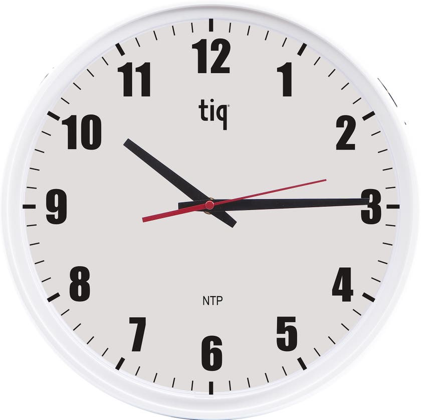Väggklocka Tiq med Ø 34,8 cm i plast och även linsen. NTP Ethernet - Kopplas in i datanätverket genom en vanlig nätverkskabel, ger ett pålitligt helautomatiskt tidssystem.