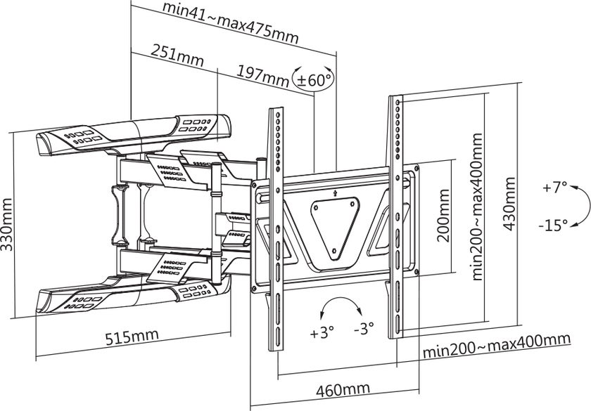 - Slimmad design, låg profil (41 ~ 475 mm)