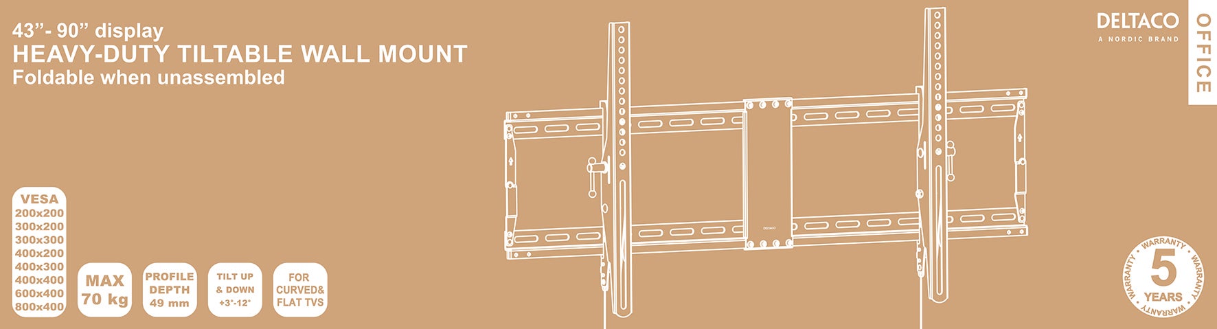 - Rekommenderad TV-storlek: 43" - 90", med en maxvikt: 70 kg