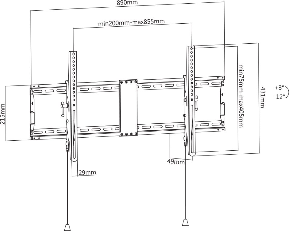 - Verktygsfri tilt mekanism: +3°~-12° för ansträngningslös justering