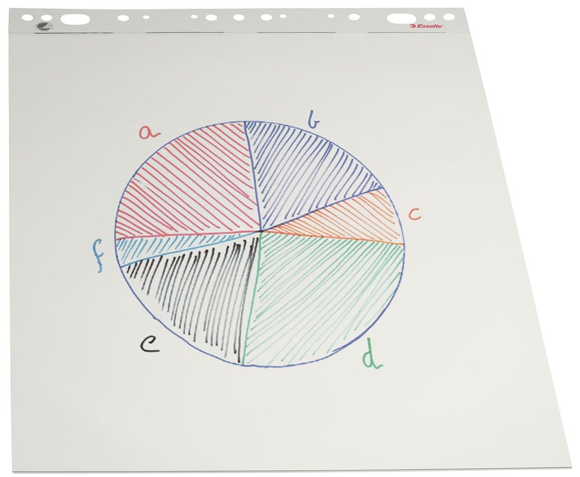 Konferensblock utan linjering på träfritt papper. Perforerat papper och universellt upphängningssystem. Passar de flesta typer av blädderblockshållare.
